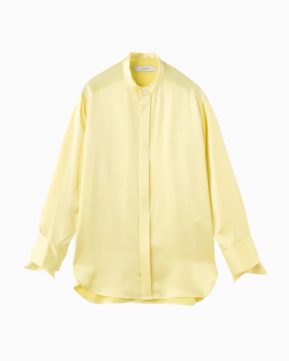 「タナカ(TANAKA )」の開襟シャツは夏らしい爽やかなレモンイエローの色味と、とろみのある素材がアンニュイなムードを演出。ヌケ感のあるシルエットや袖を折り返すと現れるグラフィックなど、細かなディテールが魅力的な1枚。