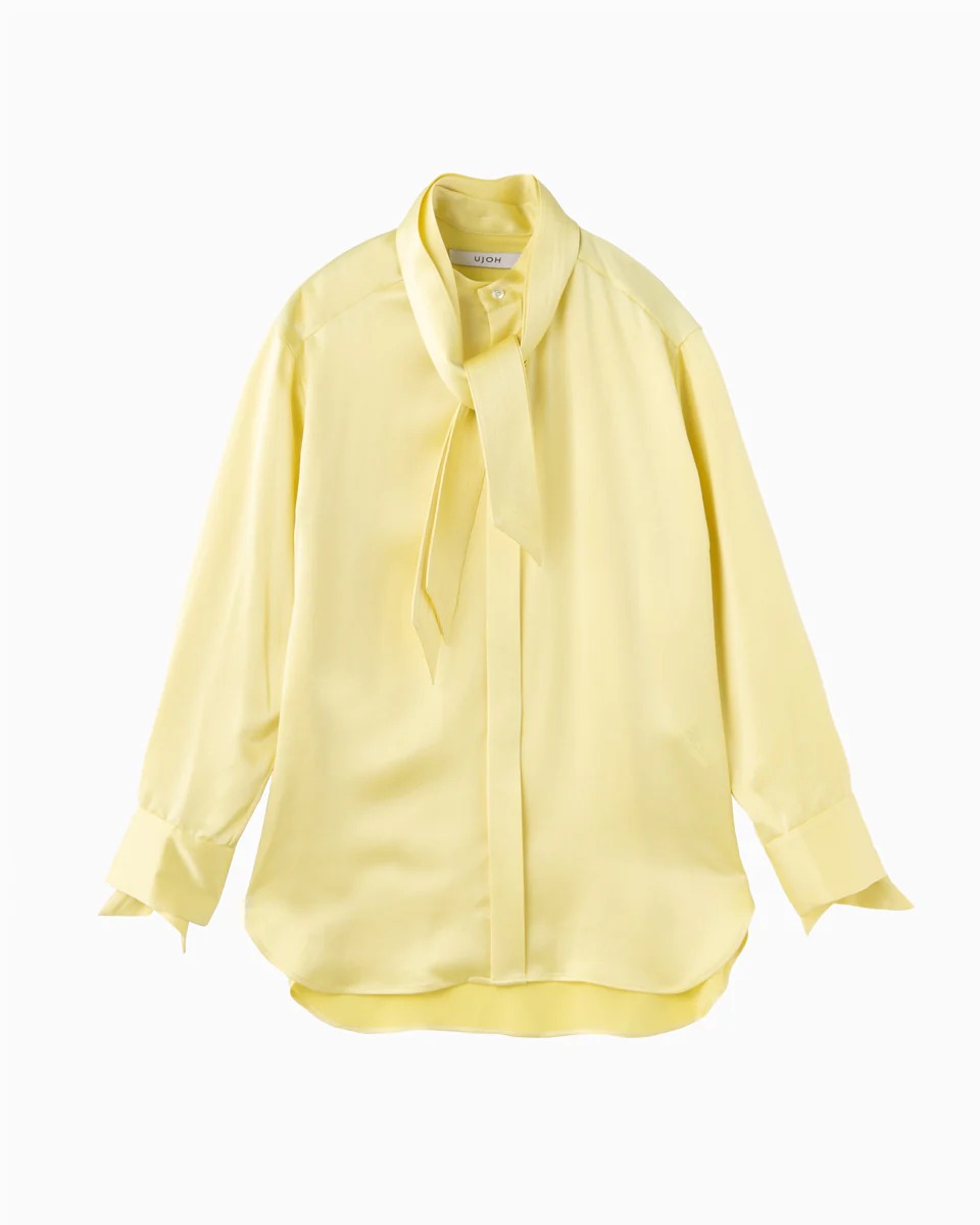 春らしいボウタイブラウスは、幅広いシーンで活躍してくれる優れもの。目を惹く発色の良さで、顔色を明るく見せてくれます。ボウタイは取り外し可能なのも◎。