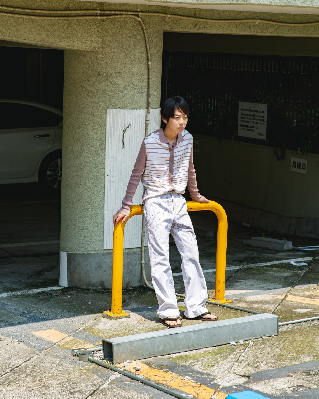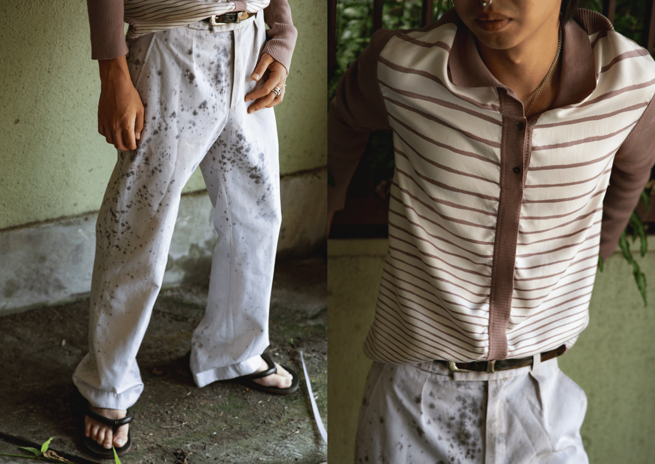サンダルがいいです!マルジェラ期のエルメスのトップス(ウィメンズ)にパンツは先程登場したカリムのものですね。そのパンツは、バクテリアに食べさせて模様を出しているそうです。