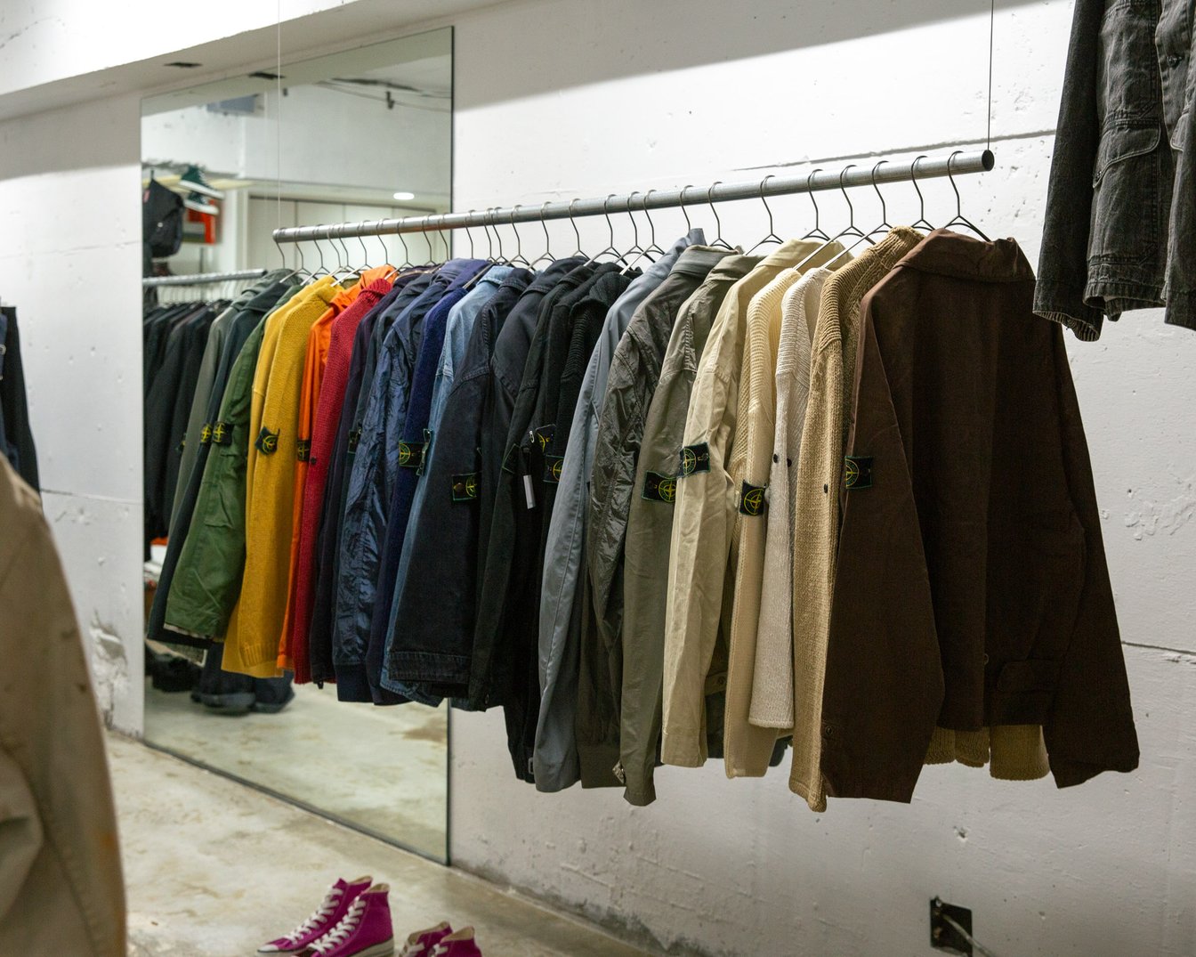 唯一無二の機能性や生地感に信頼を置くストーンアイランドのジャケットは、買い付けのたびに注力して仕入れる。オープン2周年を迎えた2024年9月には、記念としてストーンアイランドを100着放出する催しを行った。エルメスとストーンアイランドは、入荷をInstagramで告知するたびに、開店前から行列ができるという。