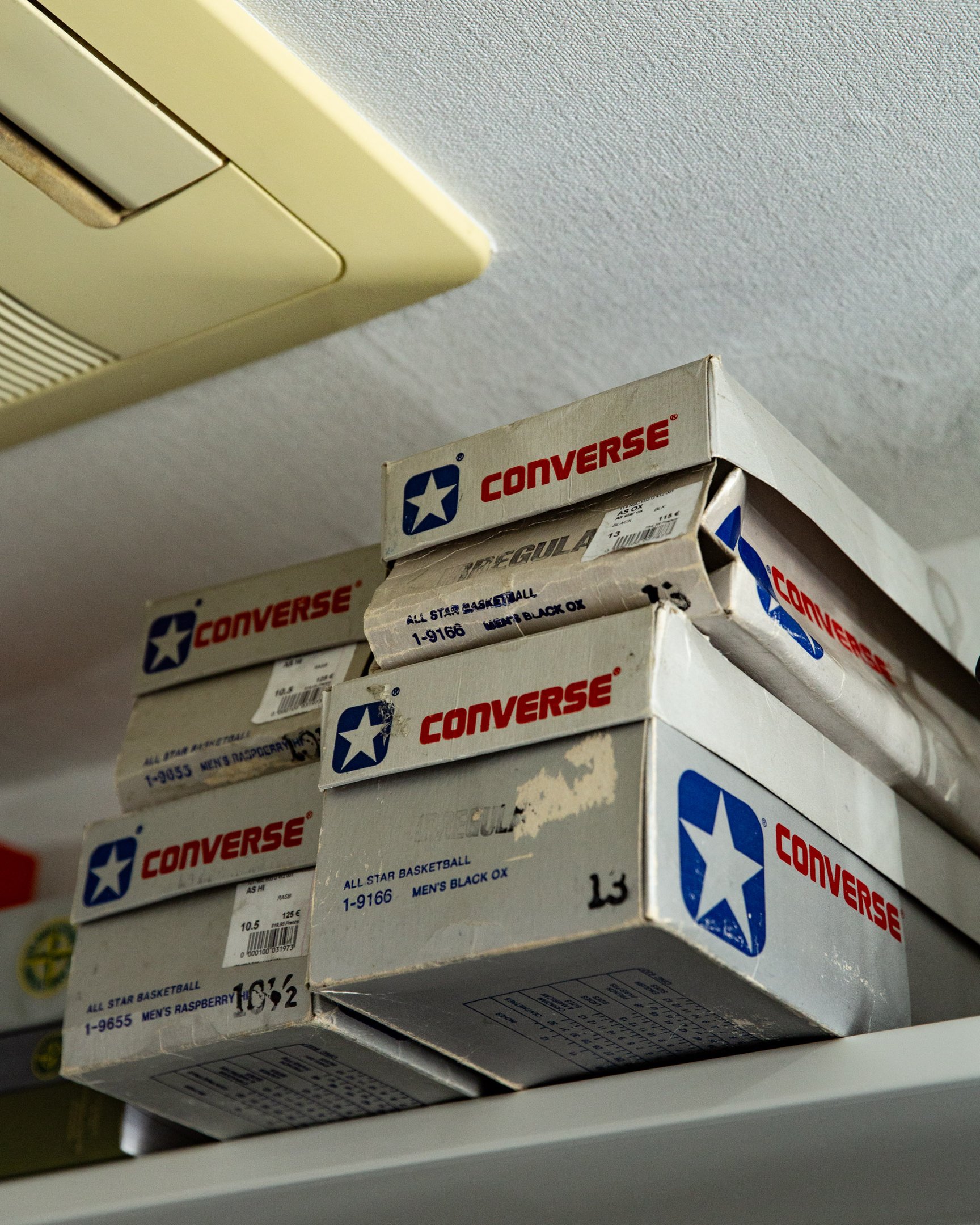 ラズベリーカラーのコンバースは1980年代前半のもの。近年の製品には見られないヴィンテージならではの色合いだ。
