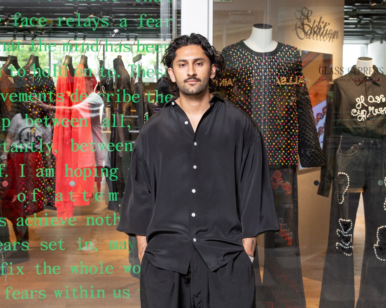 アメリカ?テキサス州ヒューストンを拠点に2016年にデビューし、2024年春夏シーズンに日本に上陸したメンズウェアブランド「グラス サイプレス(Glass Cypress)」。パールや刺繍といった手仕事による繊細なディテールが特徴で、現在は「エディション(EDITION)」をはじめ、「ユナイテッドアローズ&サンズ(UNITED ARROWS & SONS)」や「ヌビアン(NUBIAN)」などで取り扱っている。