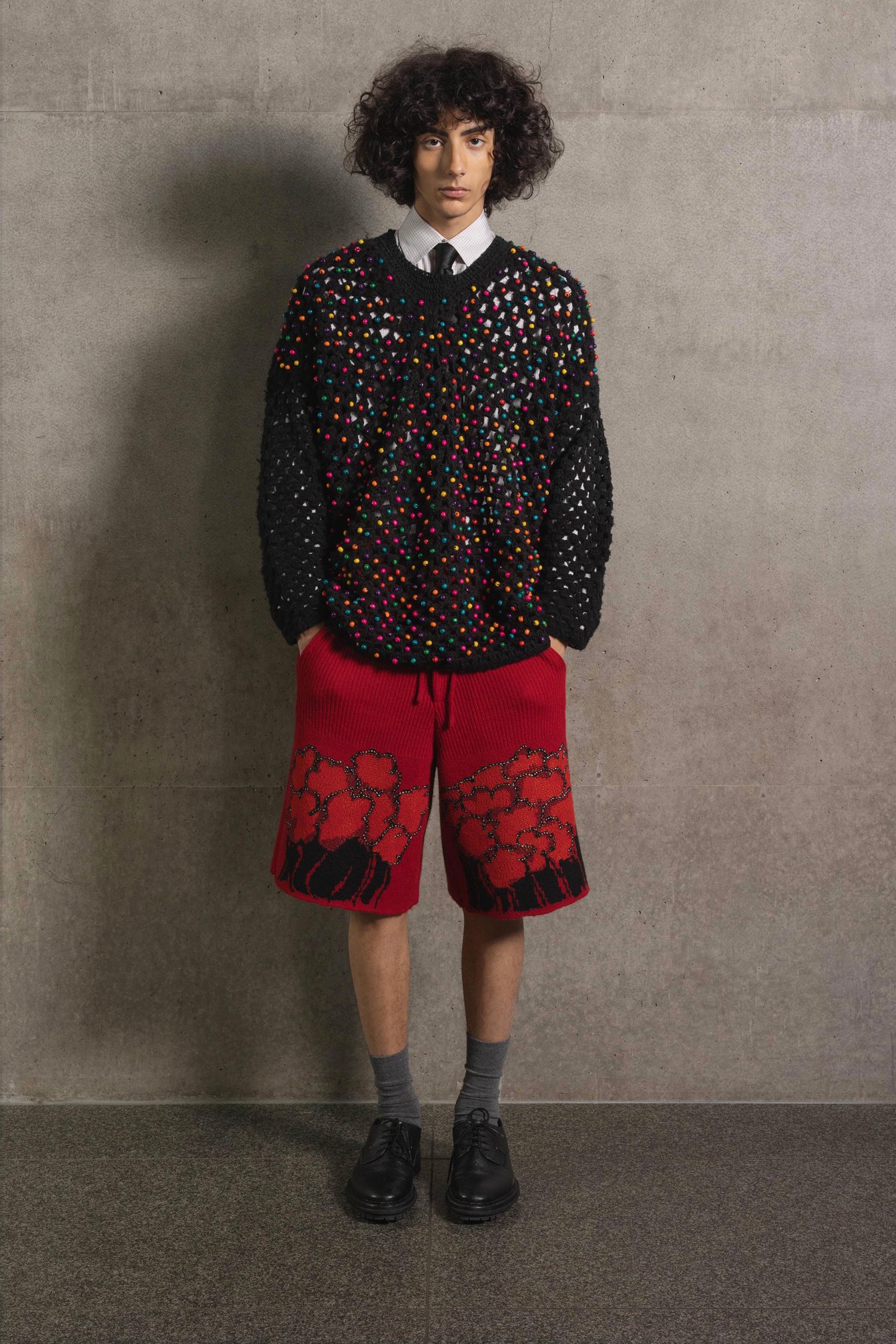 近年、メンズファッションにおいてアンドロジナス*な要素が重要視される傾向が見られますが、これらは、昨今の世界におけるインクルーシビティ(包括性)や表現主義の重要性を示しすものでしょう。グラス サイプレスでは、セレブリティファッションシーンが変化する以前から、メンズウェアとしてのクロップドシルエットやカラフルな手刺繍、パール、ビーズといったスタイルを提唱し続けていました。