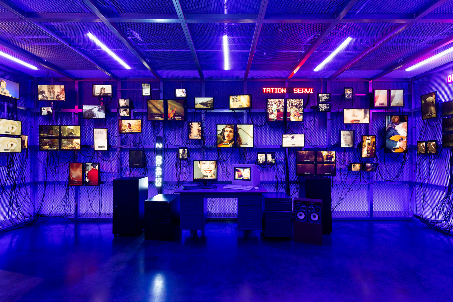 エントランスでゲストを迎えるのは、約30モニターが壁一面に配置されたコントロールルームです。画面に映し出されている映像はこれまでアレッサンドロ?ミケーレが手掛けてきたキャンペーンムービー。この後に続く部屋の序章として胸が高鳴ります。