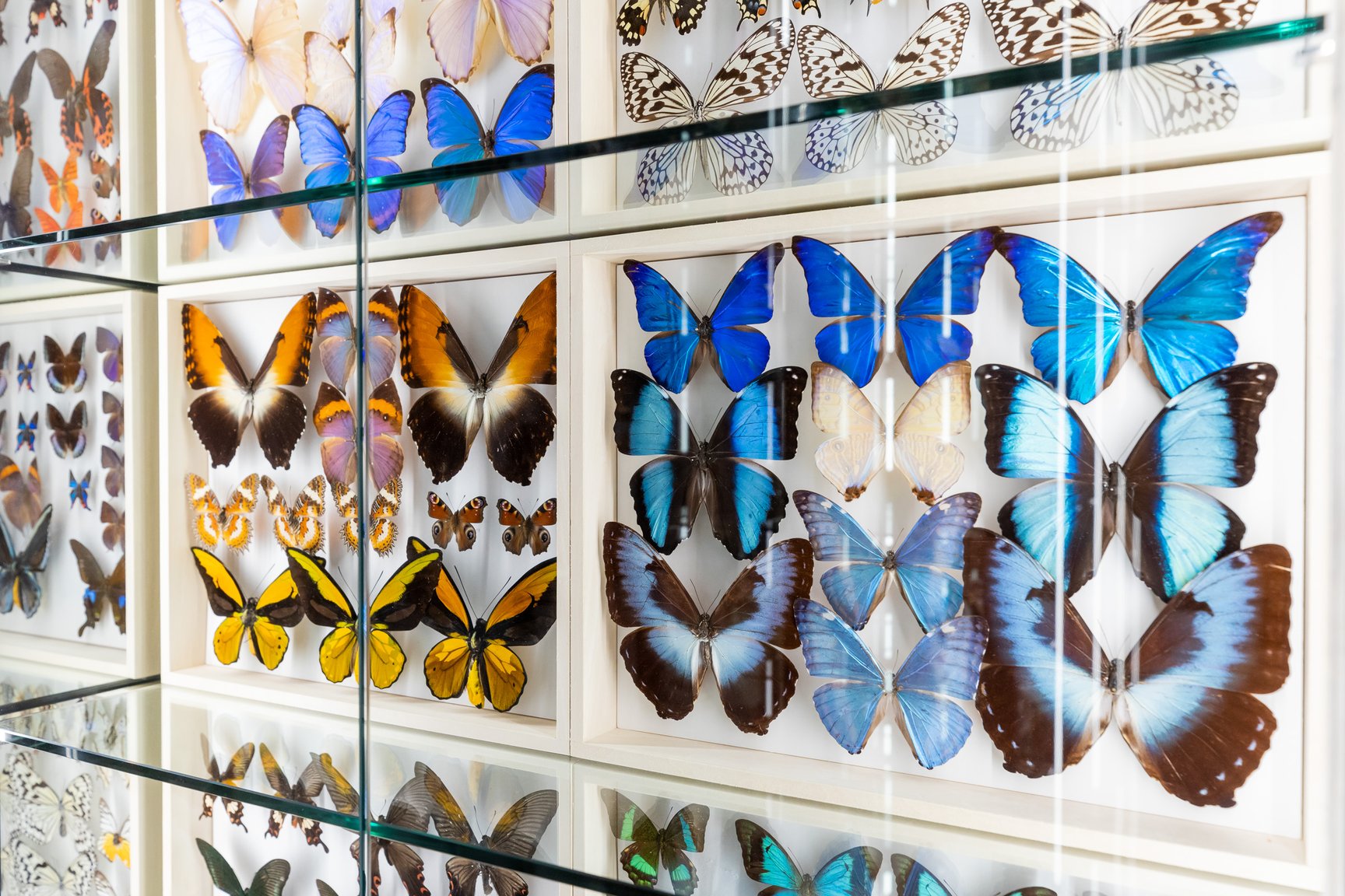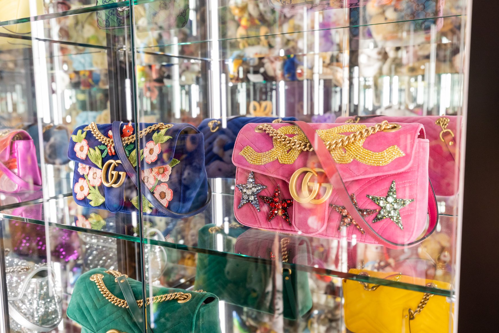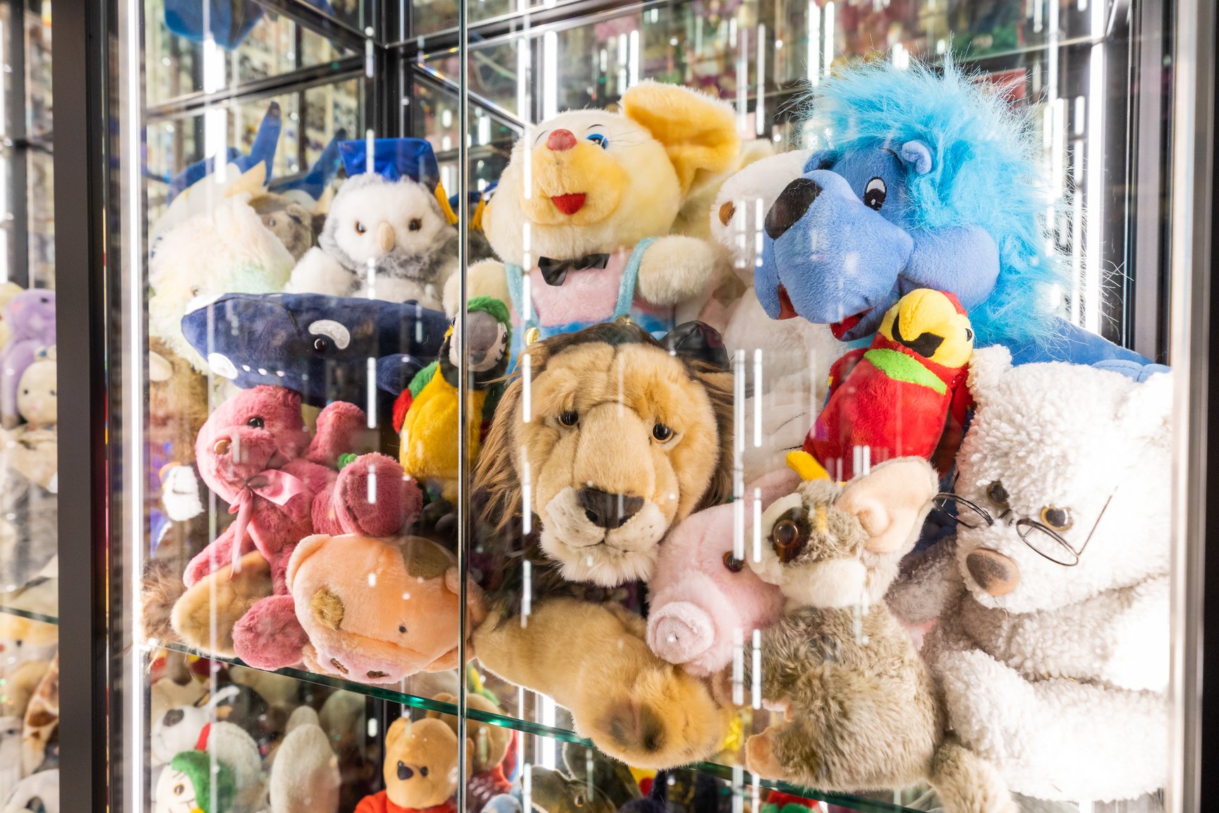足を踏み入れた瞬間に思わず息を呑む鏡張りの部屋。コレクターズアイテムの数々が陳列され、まるで無限に広がっているような感覚に陥ります。蝶の標本からぬいぐるみ、動いている鳩時計まで、嗜好の強い収集品が並びます。部屋の中心にズラリと陳列されているのは、様々なサイズや素材、カラーやモチーフの「GGマーモント」。コレクターの熱狂的な情熱や偏愛がぎっしりと詰め込まれた空間は、どこか人間のエキセントリックさを感じさせるほど。