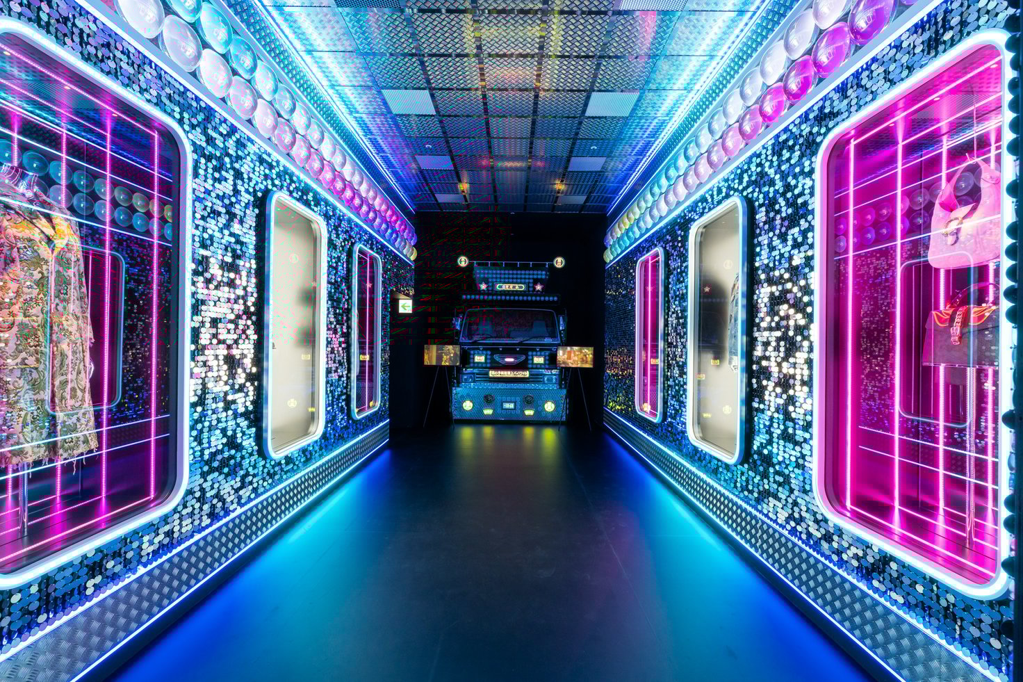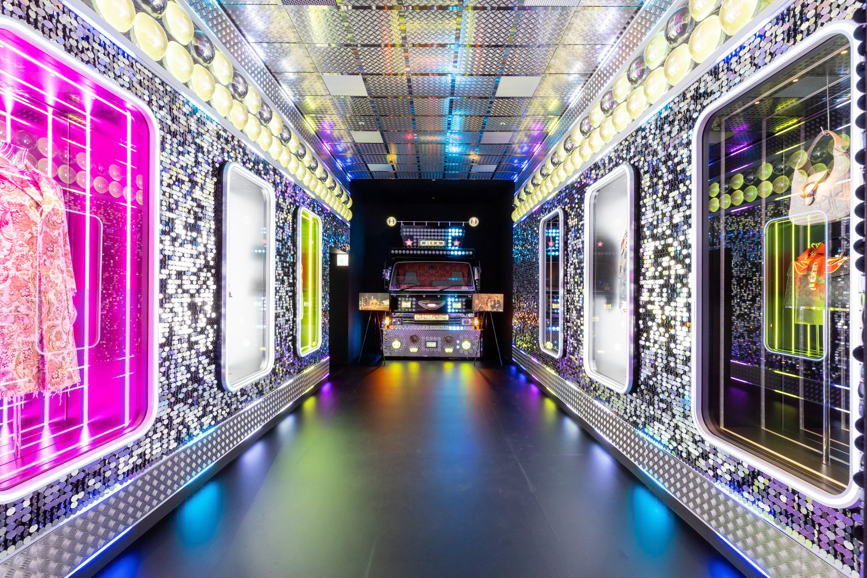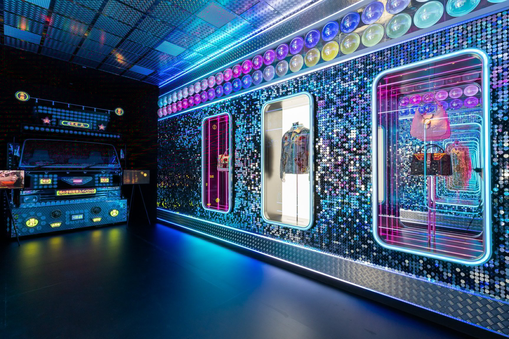 13ある部屋のうち最も煌びやかで印象的な"デコトラ"の部屋。2016年秋冬の広告キャンペーンの舞台となったのは東京でした。喧騒の中、眩いネオンライトに照らされた夜の街も、グッチのフィルターを介してみると幻想的で夢の中にいるよう。デコトラに代表される過度な装飾は偏執的なカスタマイズを愛する日本のチューニング文化に根差しているのだとか。チカチカと点滅するライトの視覚効果で、まるでキャンペーンで描かれたハイパーテクノロジーの世界へと引き込まれていくかのような感覚は、まさしく"没入"スポットです。