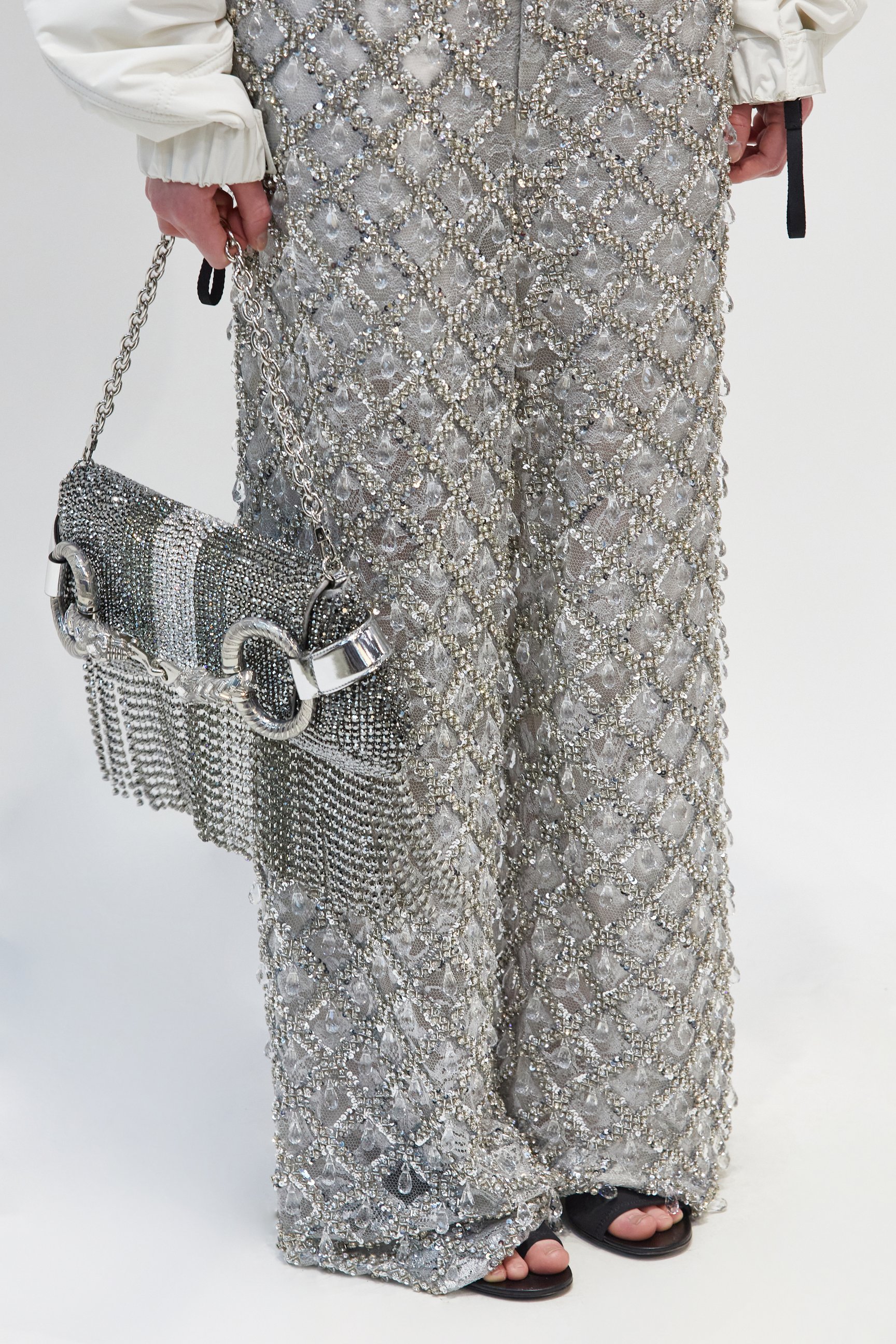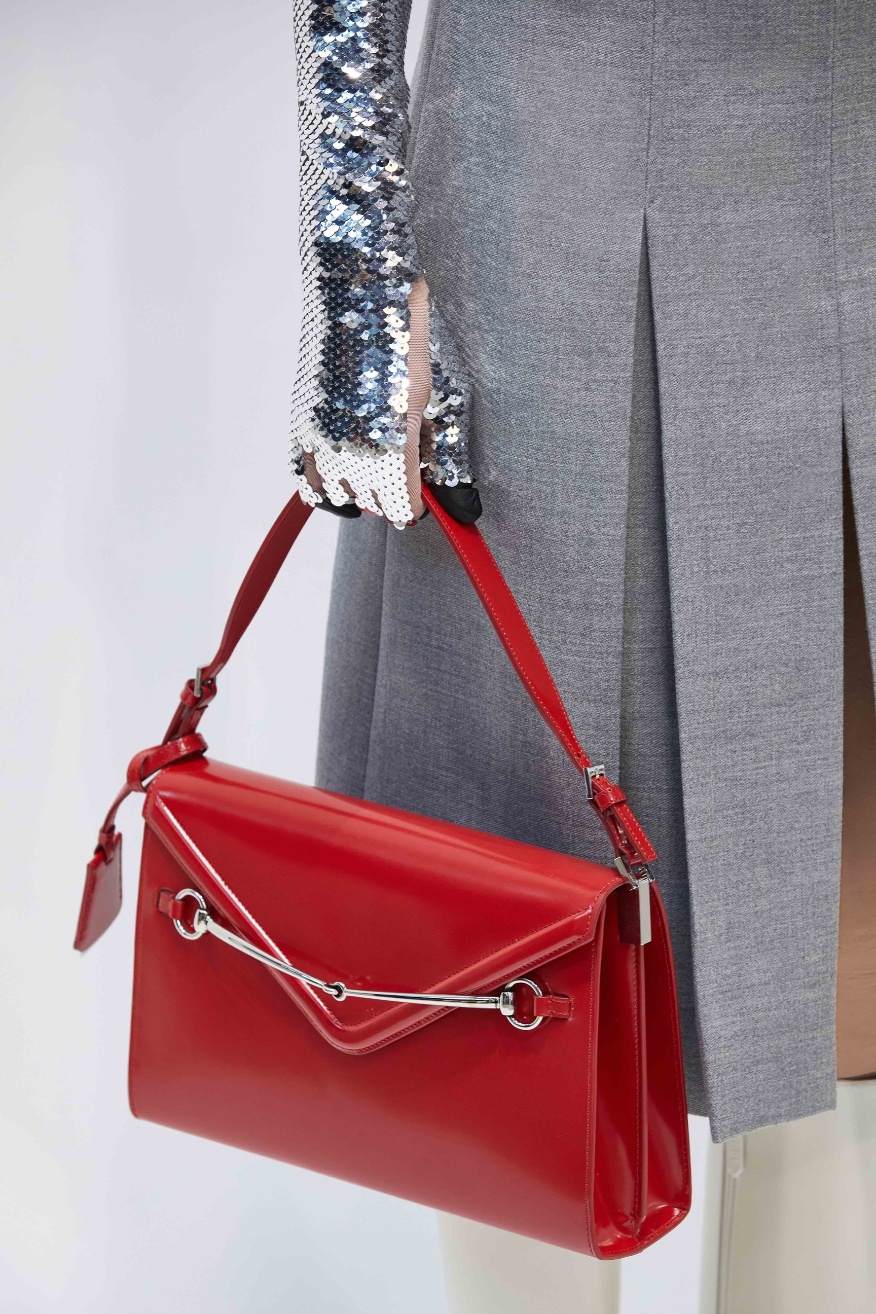 1990年代後半のグッチを彷彿とさせるシルエットや、ブランドのシグネチャーもコレクションを構成する要素の一つ。ホースビット付きのレザーチェーンバッグは様々なバリエーションで展開され、アーカイヴから引用されたミニマルなバッグは、カラフルなスキューバダイビングのマテリアルで再解釈している。