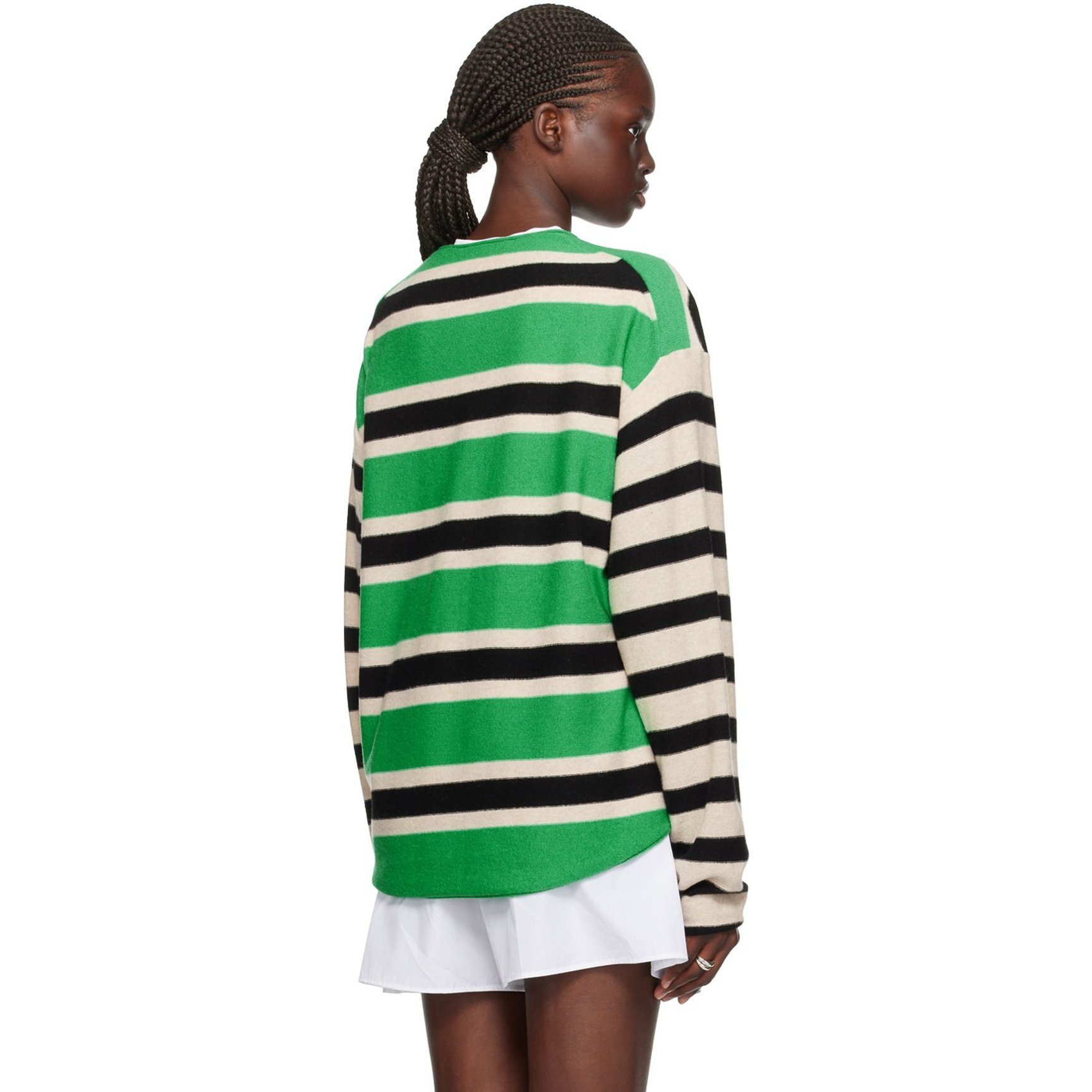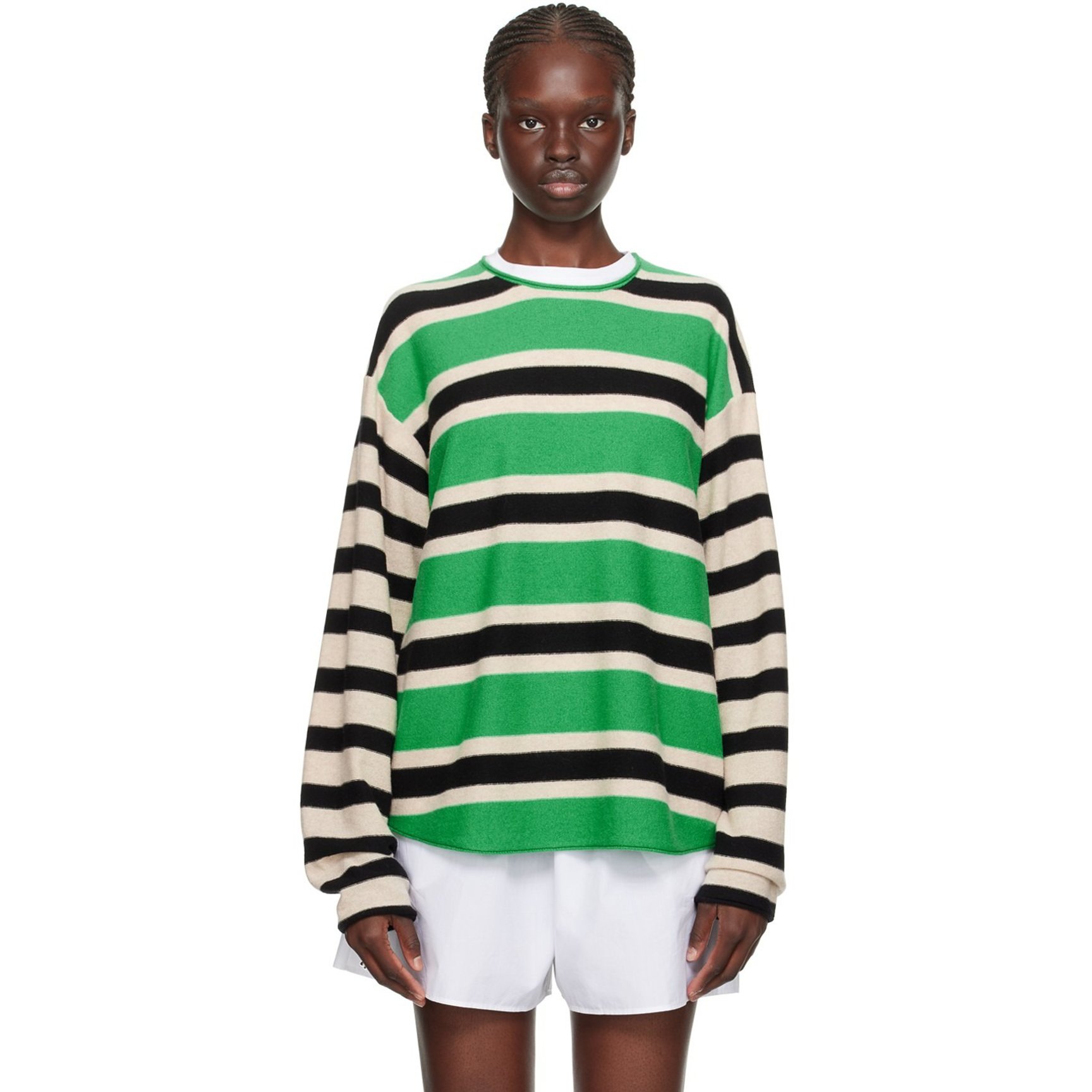トレンド感漂うグリーンが鮮やかなプルオーバーセーター。マルチカラーボーダーがカジュアルなスタイリングにマッチし、デニムやイージーパンツとも好相性。すっきりとした生地の厚みで着ぶくれせず、3シーズンで活用できます。色違いにはジジ?ハディッド本人がモデルを務めたレッドも用意。