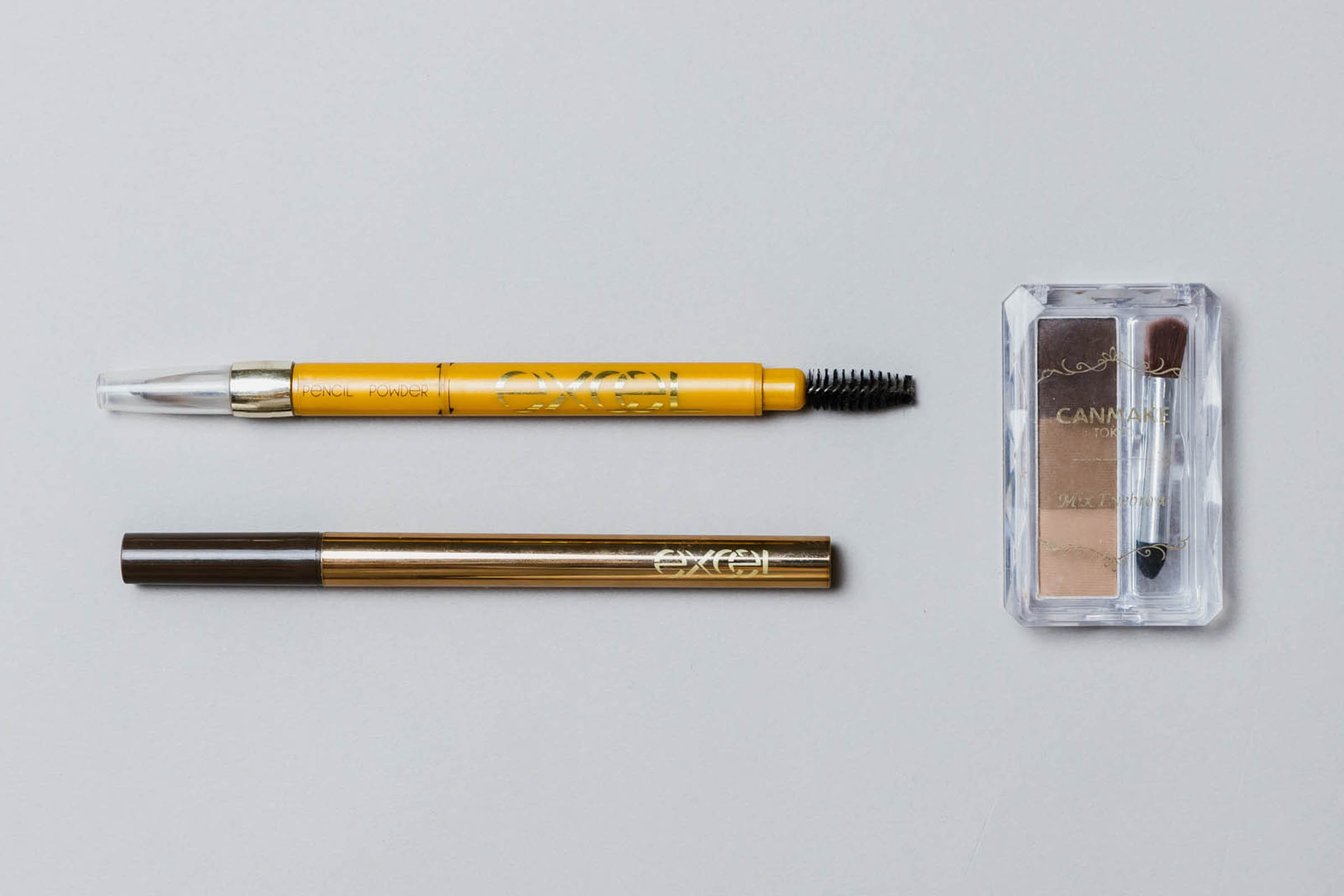 ギュテ:いつも使っているのは「エクセル(excel)」の「パウダー&ペンシル アイブロウ EX」と「スキニーリッチライナー」、「キャンメイク(CANMAKE)」の「ミックスアイブロウ」で、もはや三種の神器(笑)。眉毛を描く最大のポイントは理想の眉毛を研究し尽くすことだと思います。僕は自分が好きなアイドルなどで参考にしたい眉毛の画像を見て、形や角度、濃さ、毛流れを徹底的に分析して、自分に似合う描き方を探したので、その過程で今の技術が身につきました。