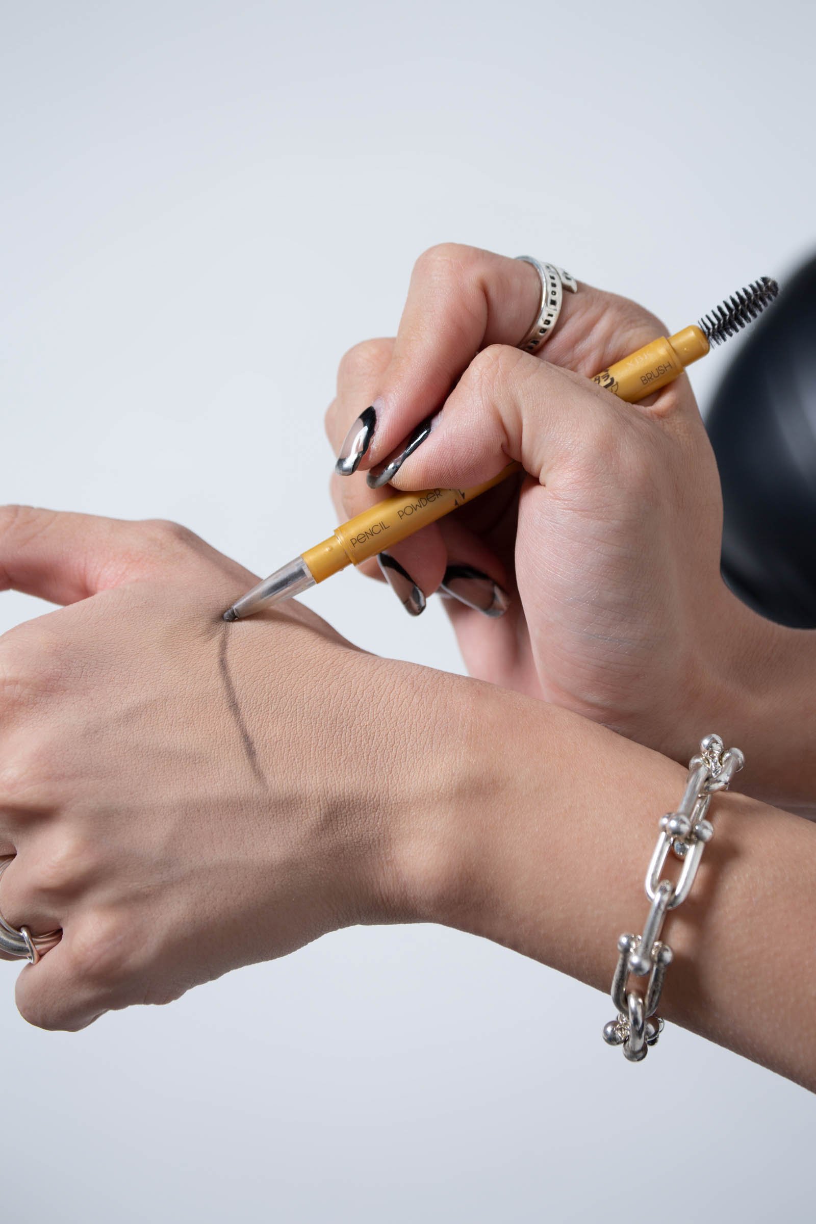 (左)エクセル「パウダー&ペンシル アイブロウ EX」、「スキニーリッチライナー」(右)キャンメイク「ミックスアイブロウ」