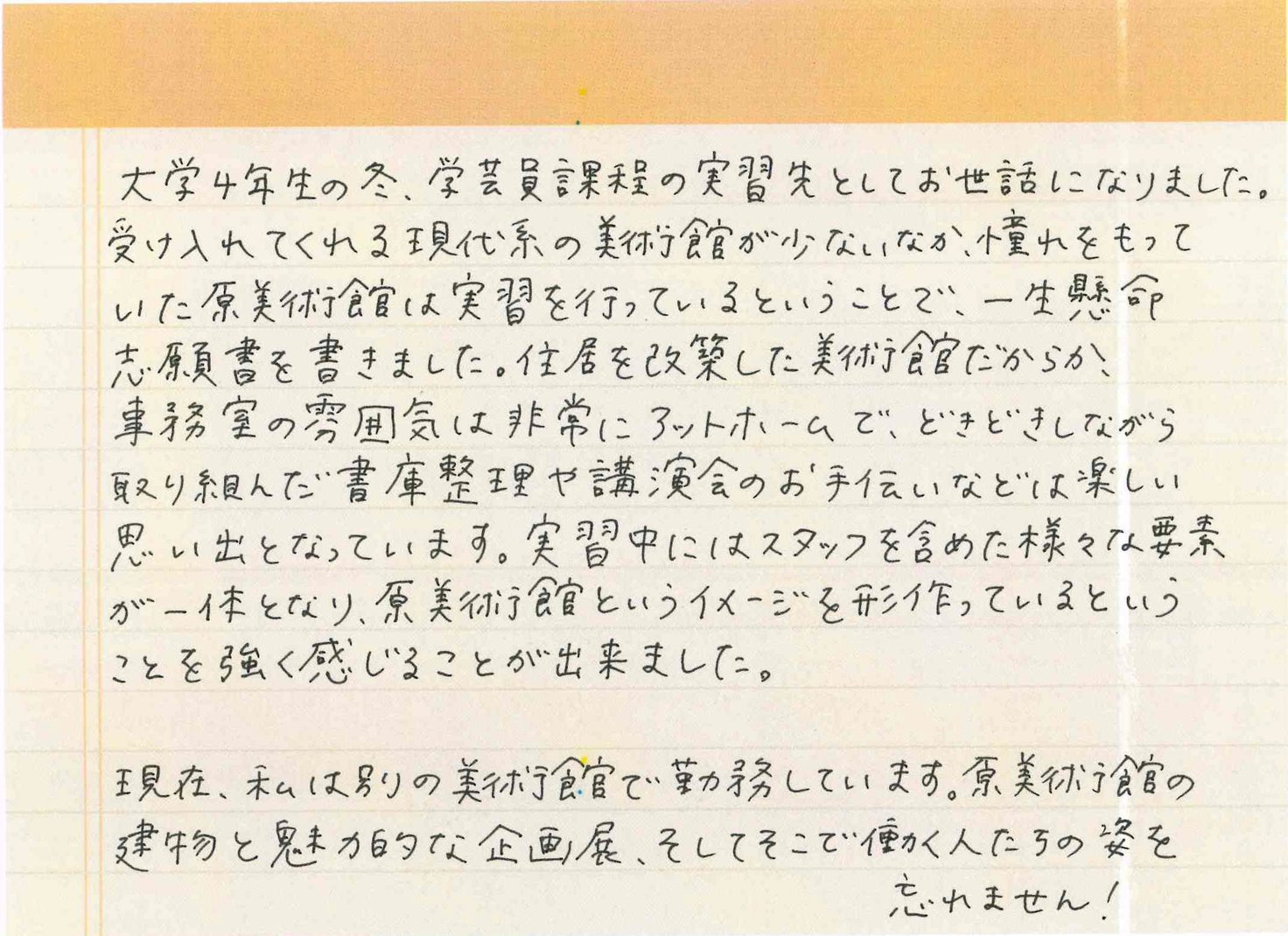 「実習の終わりに頂いた、過去展覧会のカタログは今でも大事に保管しています」