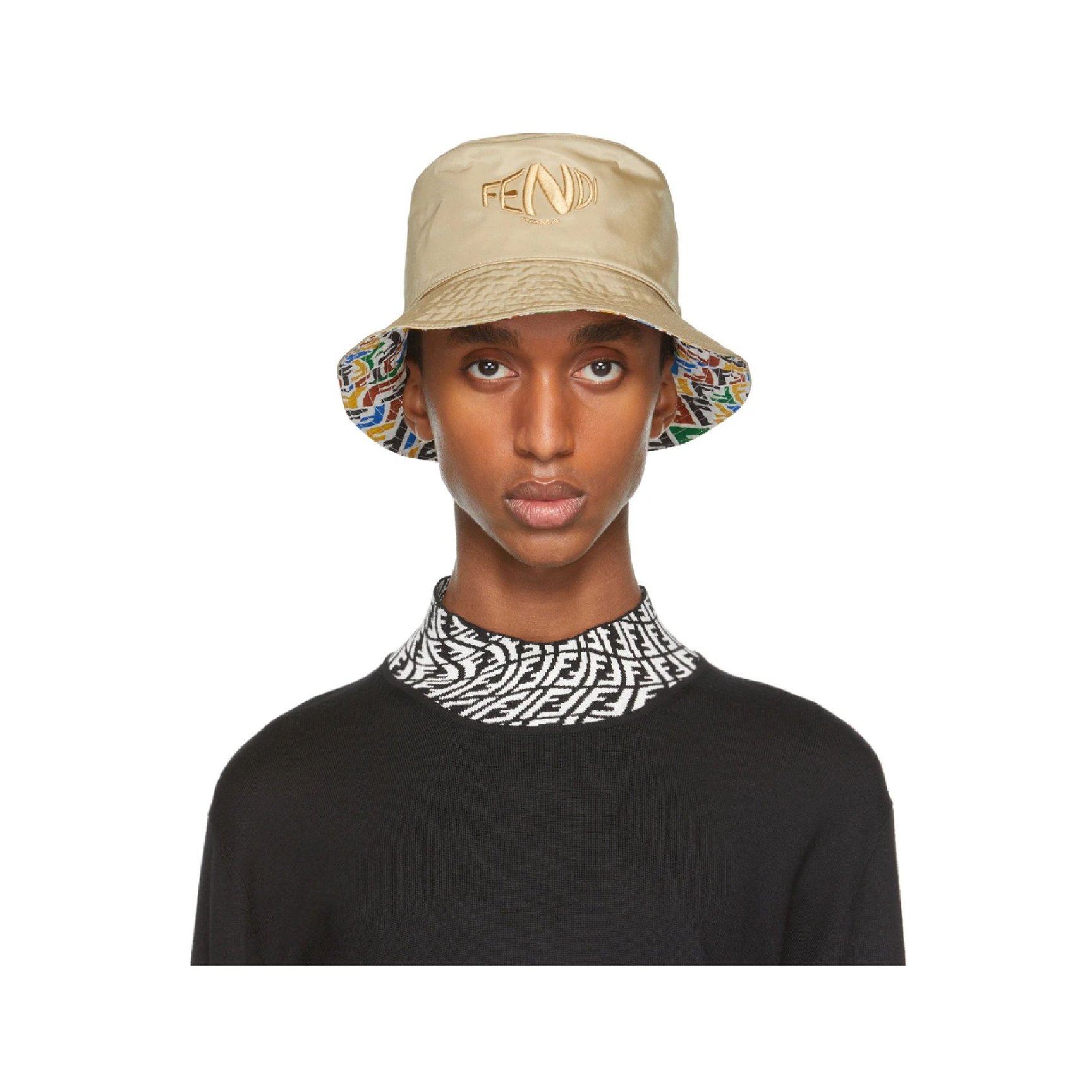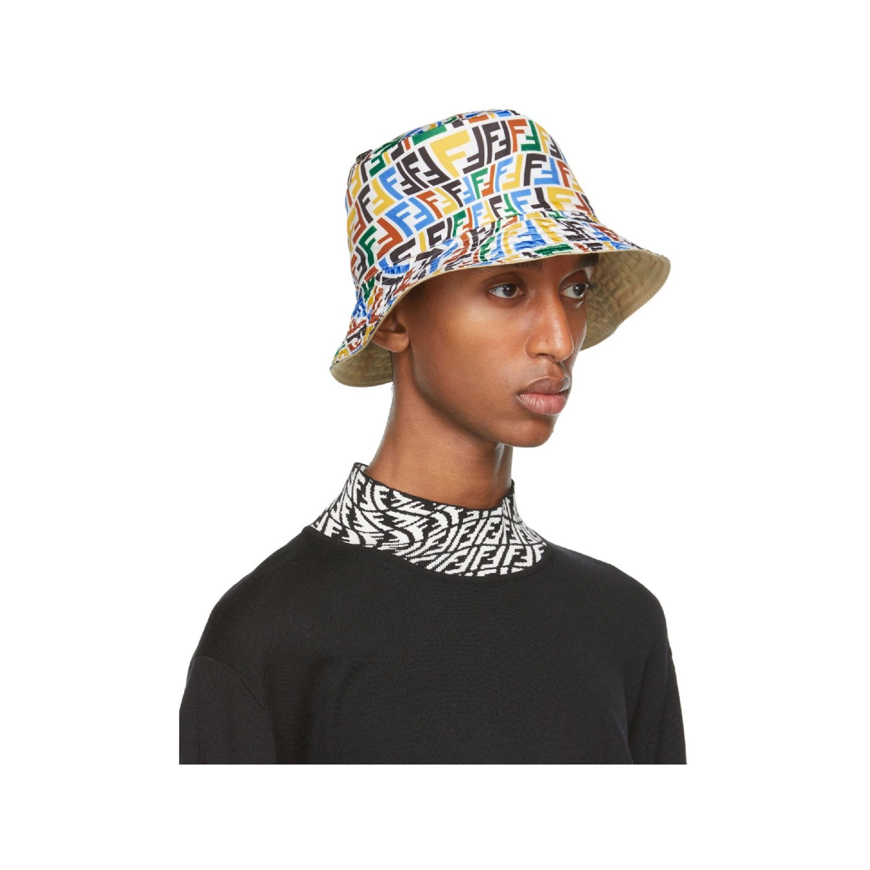 FENDI リバーシブル ベージュ & マルチカラー FF Fish-Eye バケット ハット ?59,500(関税?消費税込)