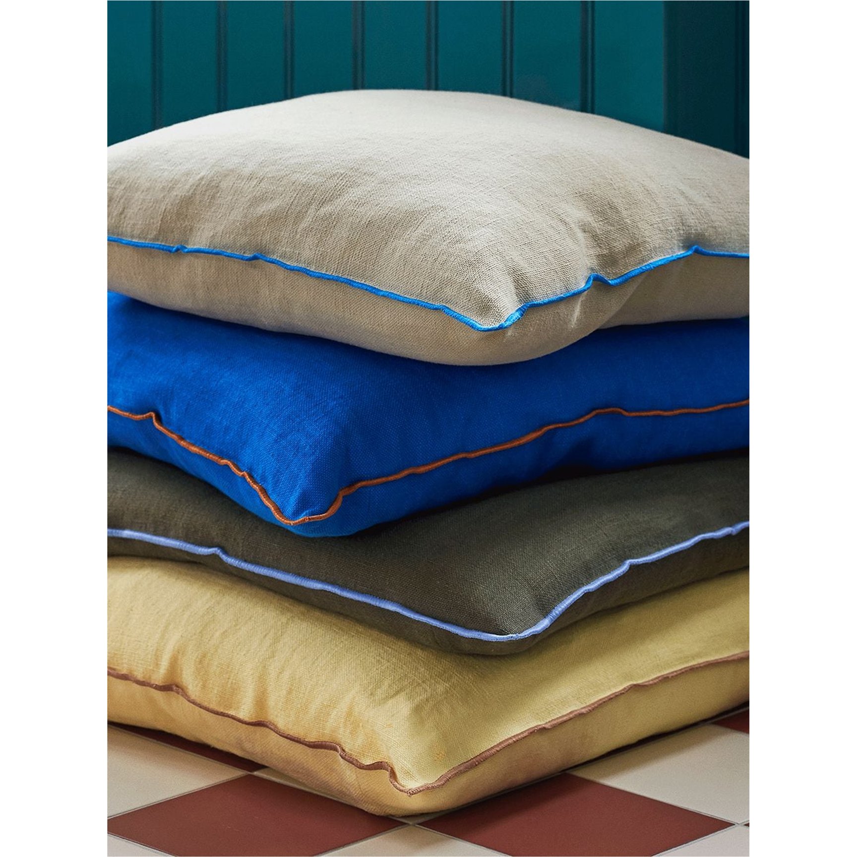 コットンリネン生地の優しい風合いと、モダンな色合いのパイピングが特徴。色違いで揃えてみるのもおすすめ。
