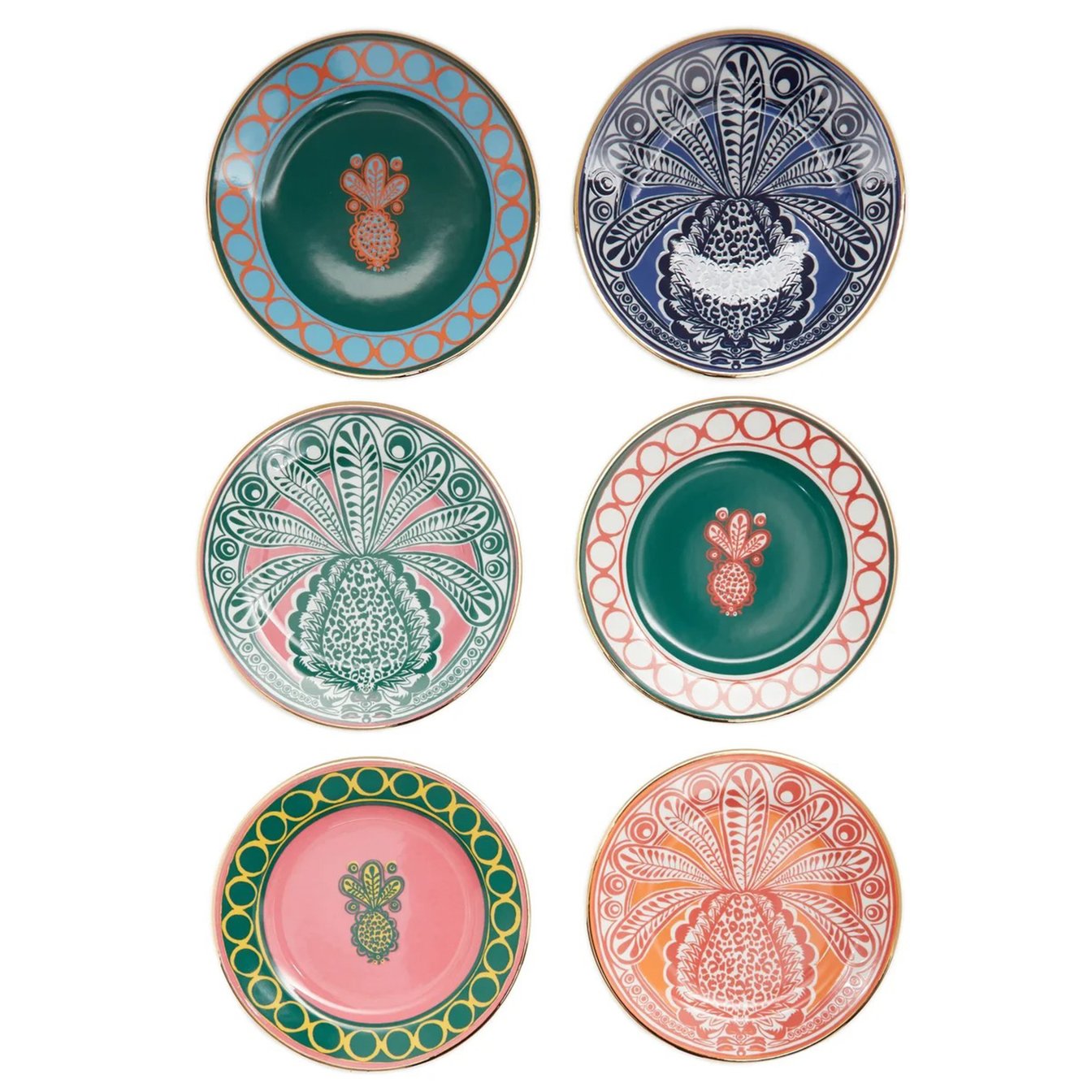 テーブルクロスでも紹介した「ラ ダブル ジェイ(La DoubleJ)」はカトラリーも見逃せません。一枚一枚デザインが異なるデザートプレートセットは、その日の気分にあわせてセレクトできる優秀セット。どれ一つとっても華やかなデザインで、テーブルセッティングの楽しさが倍増します。