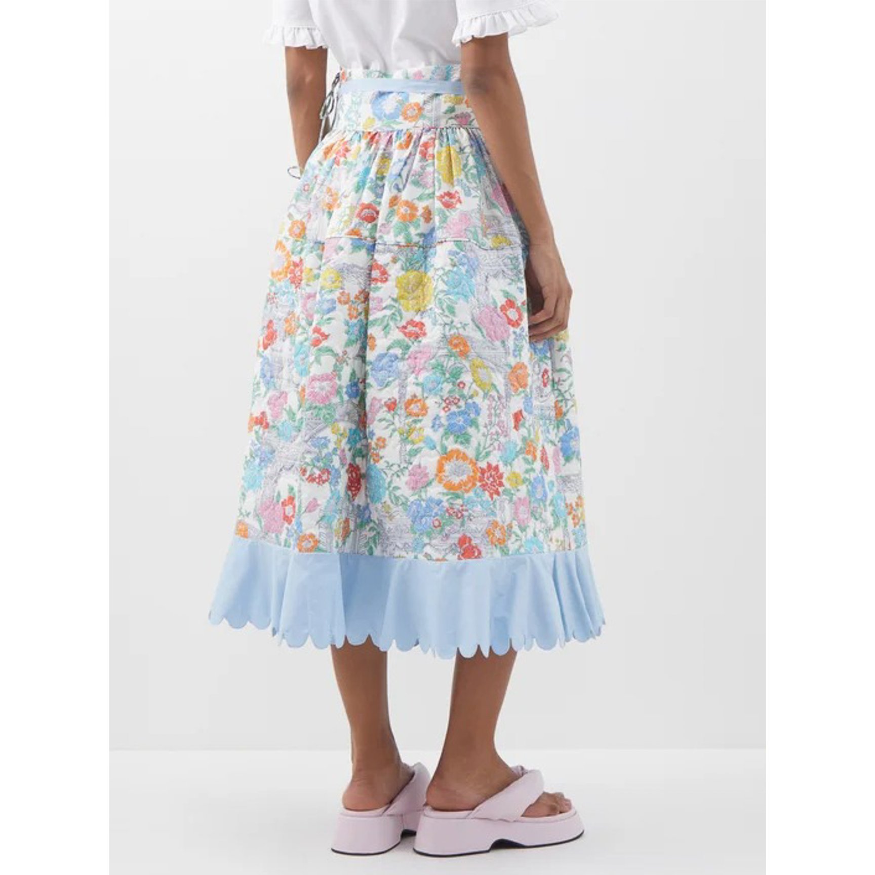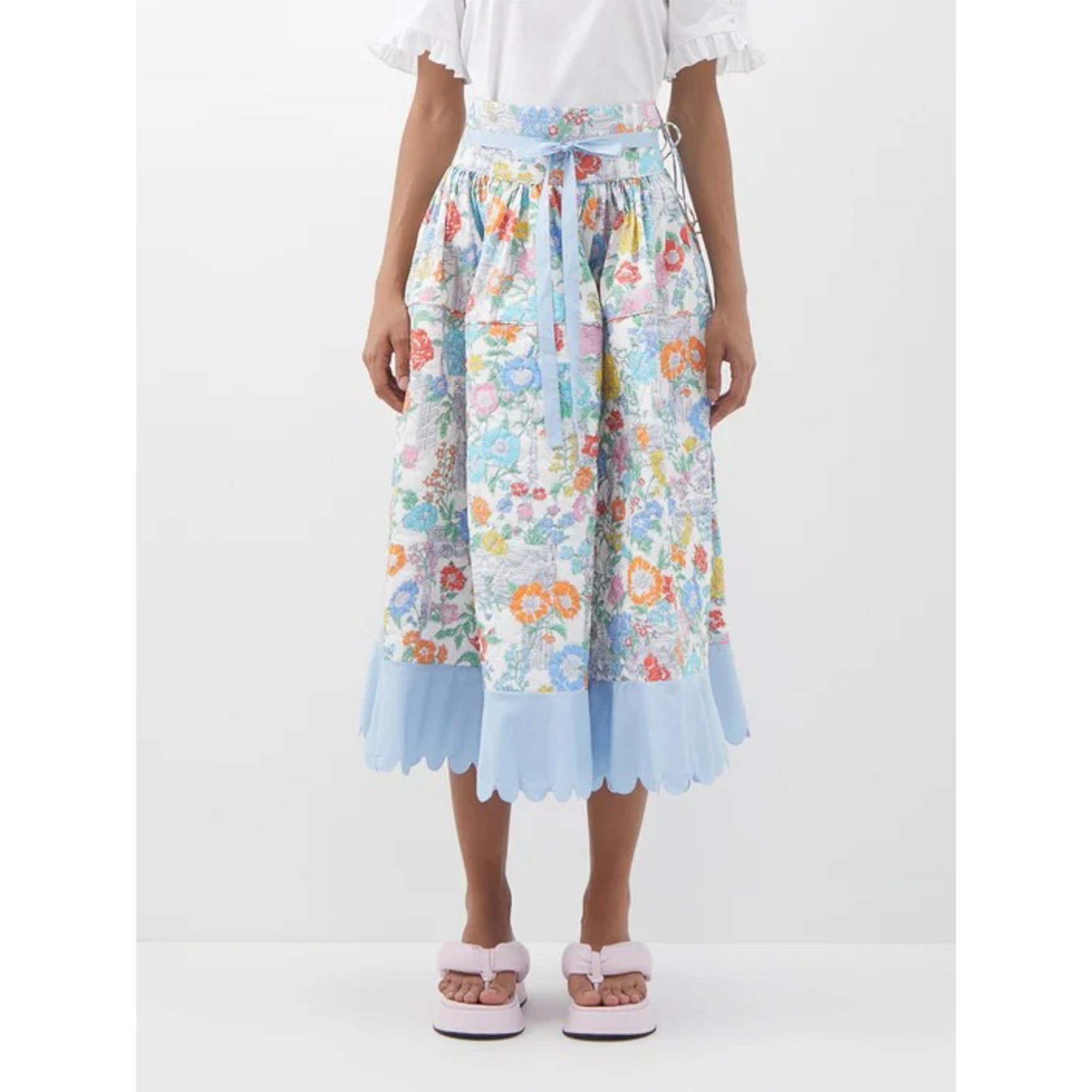 フローラルプリントのキルティングコットンパネルを用いた「クロエ」スカート。リボンタイ付きのハイウエストからふんわりとしたフレアシルエットへと広がるアイテムです。コンパクトなトップスと合わせて、メリハリの効いたスタイルがおすすめ。