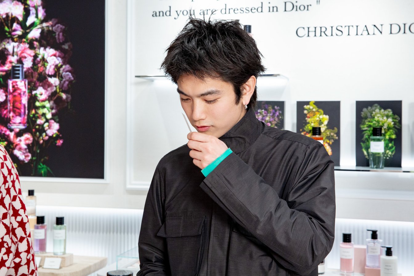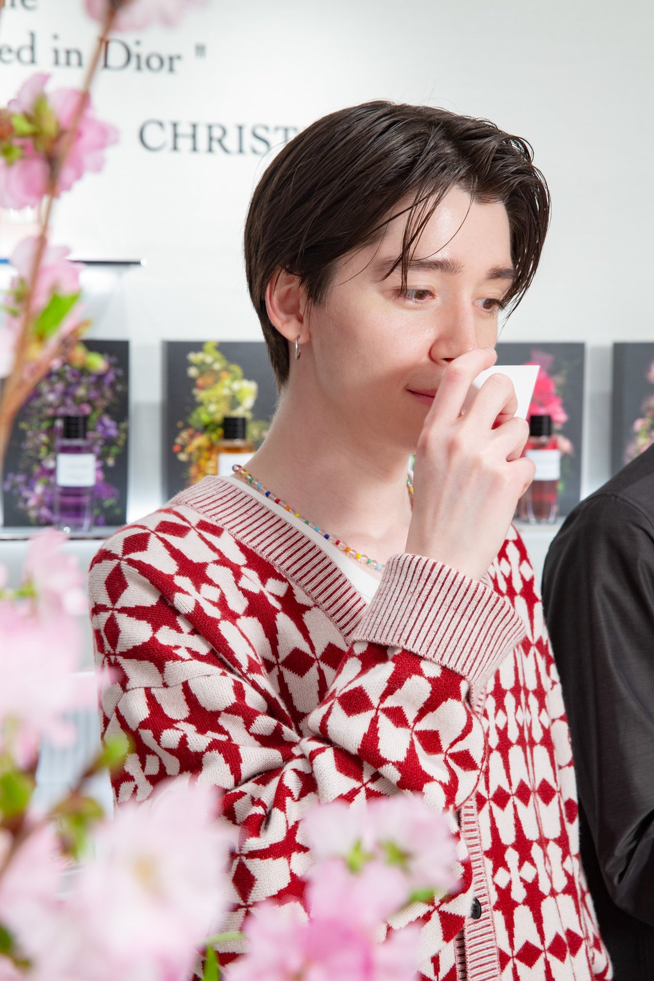 ローズ:セクシーな香りの中にフェミニンな要素もあって、僕が素敵だと思う大人の男性像にぴったり。服装に合わせて香りを選ぶことが多かったけど、この春はディオラムールの香りに合わせて、ファッションもマスキュリンなスタイルを取り入れたくなった!