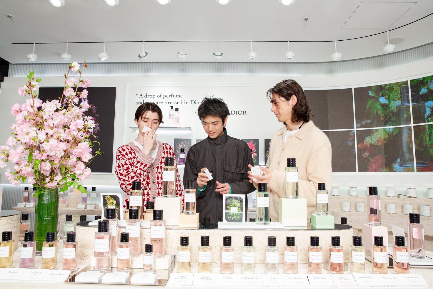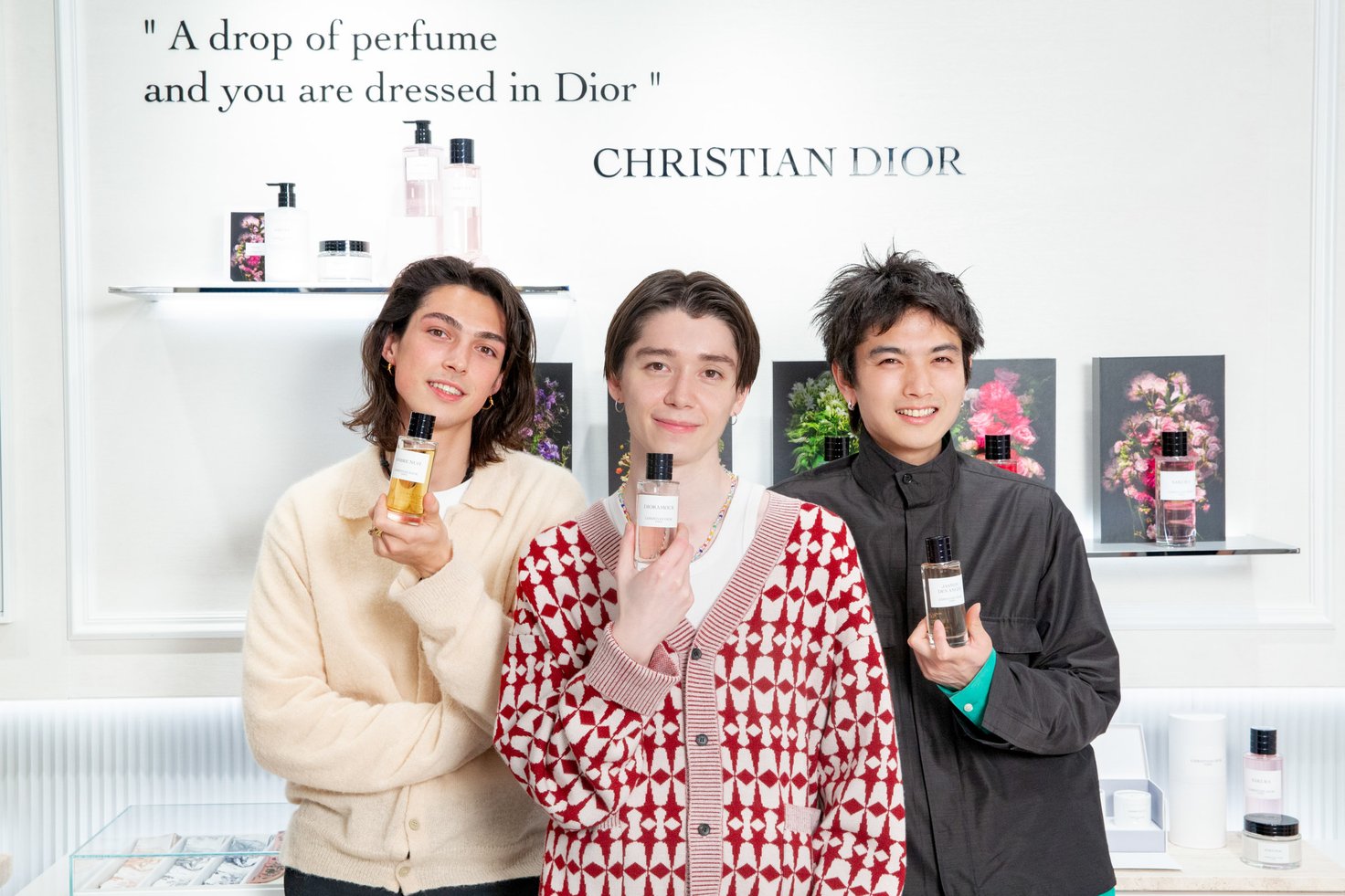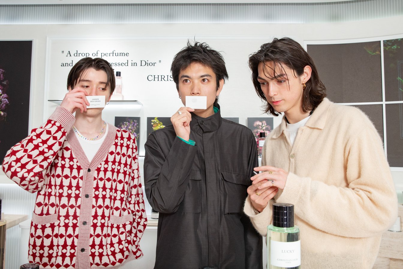 「ディオール(DIOR)」の「ハウス オブ ディオール ビューティー 表参道」がリニューアルオープン!広々とした店内には、上質なフレグランスコレクション「メゾン クリスチャン ディオール」も勢揃い。ジェンダーレスに愛される香りの数々を、YouTuber「OUR's」のモーガン蔵人さん、ローズさん、深水光太さんの仲良し3人組が体験。この春つけたい香りを探してもらいました。お互いに似合うフレグランスもセレクト!