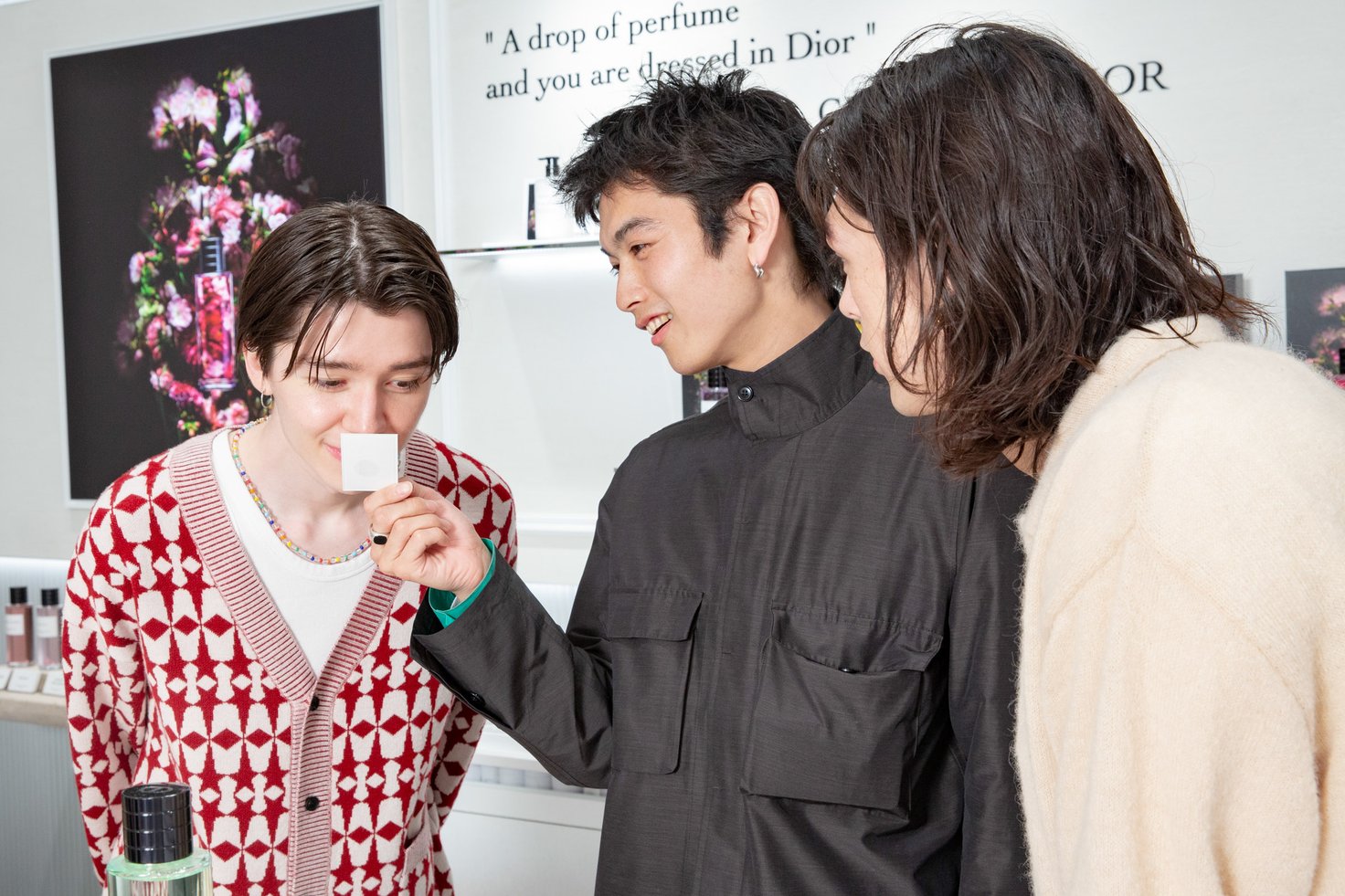 ファッションセンスも抜群の3人。トレンドに合わせてファッションを楽しむように、香りも季節や気分に合わせてスタイルチェンジ!ということで、ハウス オブ ディオール ビューティー 表参道のフレグランス スペシャリストに相談しながら、今の気分やスタイルに合わせたい香りを選んでいきます。