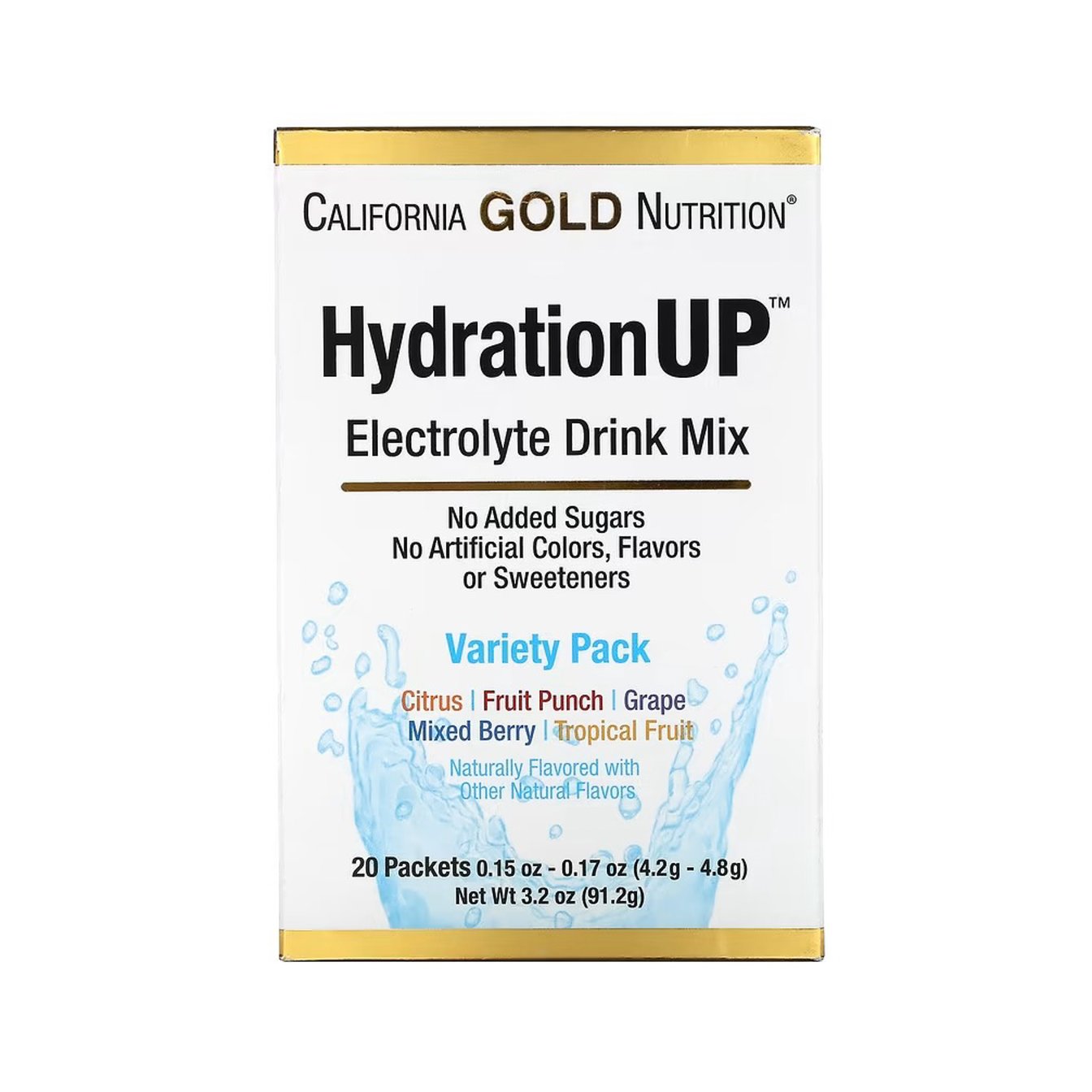 水分補給にぴったりな、「California Gold Nutrition(カリフォルニアゴールドニュートリション)」の電解質ドリンクミックス。5つのフレーバーが入ったバラエティーパックには、砂糖不使用でフルーツ系の爽やかな甘さが嬉しい20袋がセット。ミネラルウォーターや炭酸水に好みの量を混ぜ、冷蔵庫にストックしておきたいところ。