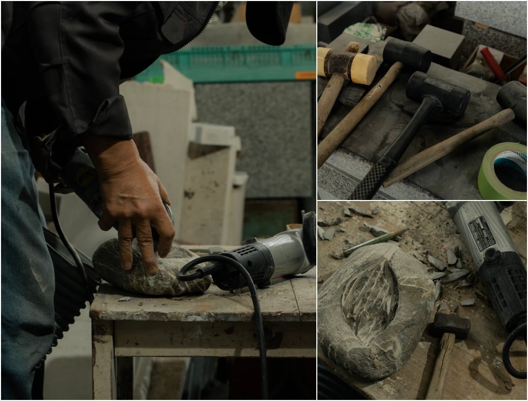 普段は墓石や、室内装飾を手掛けています。松本市は工芸が盛んで、石屋も多いです。組合に所属している石屋が25軒、組合に入っていない石屋も含めると30軒以上あります。