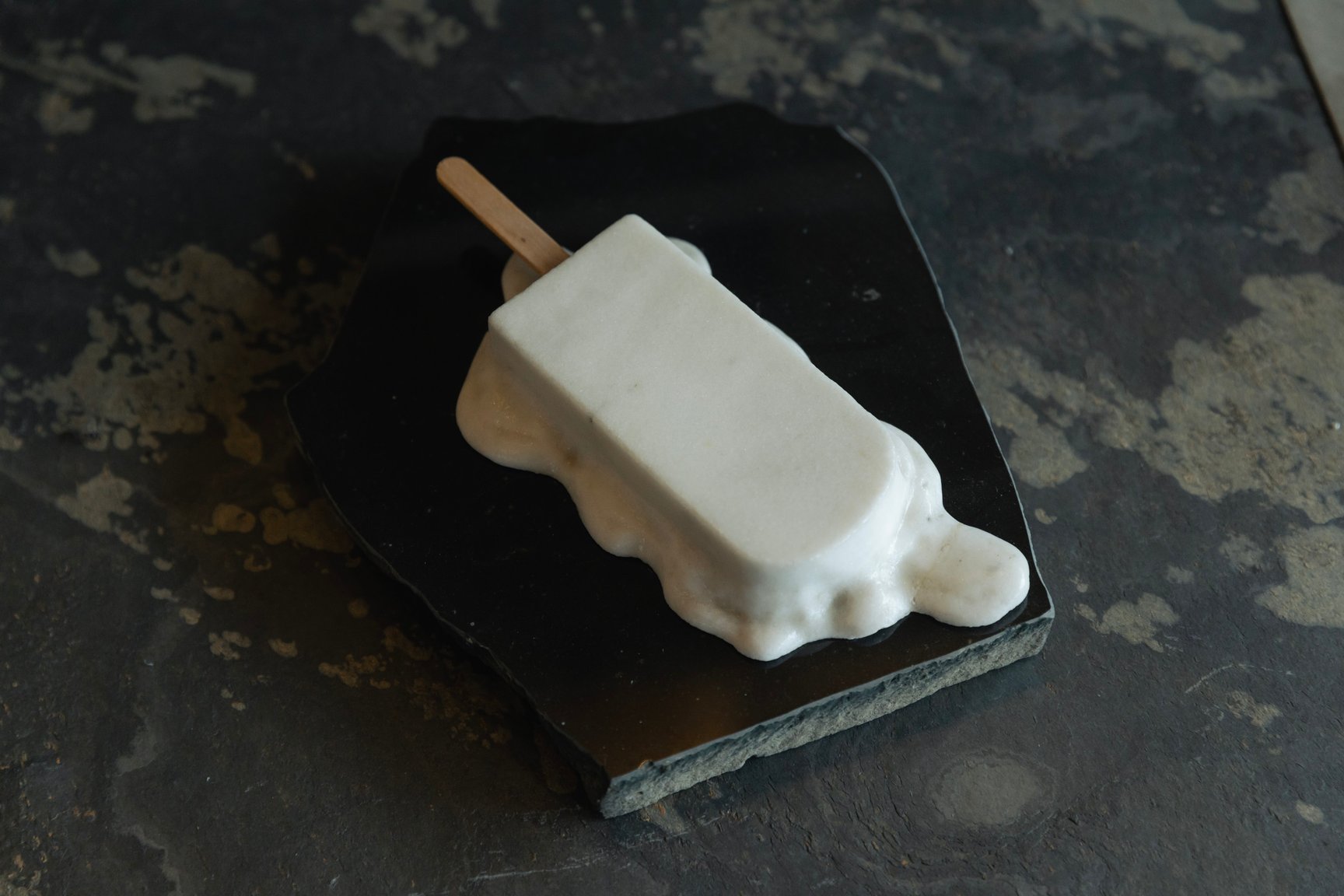 ー伊藤さんは硬質で質量のある石で、縛られた布、溶けるアイス、伸びるお餅といった、まったく相対する物質を表現していながらも、目視で「これは石だ」とぎりぎり認識できるような作品が多いと感じました。