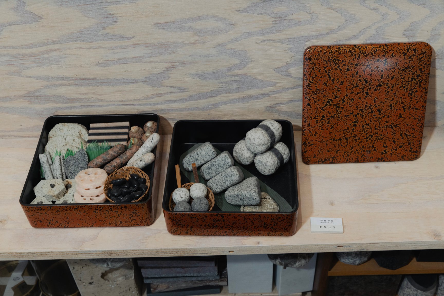 元々「工芸」と呼ばれているものは遊びの要素が多く、漆や陶磁器、金属を扱った工芸品はユーモアをふんだんに取り入れています。例えば、お月様をテーマにした桂離宮などの建物は、襖ひとつをとってもお月様の格好にしつらえていたりします、遊び心というのは、江戸時代よりも前から日本人に染み付いているものなんだと思います。そして、その遊び心は、主人と顧客の暗黙の了解の中で出来上がっている。そういう作品の感性に憧れたんです。なぜなら、遊び心の共有は知識がないとできないから。だから僕は、食べ物や服などの身近なものを石で表現しているんです。現代における、遊び心の共有は「日常」という共通のテーマだと思うから。