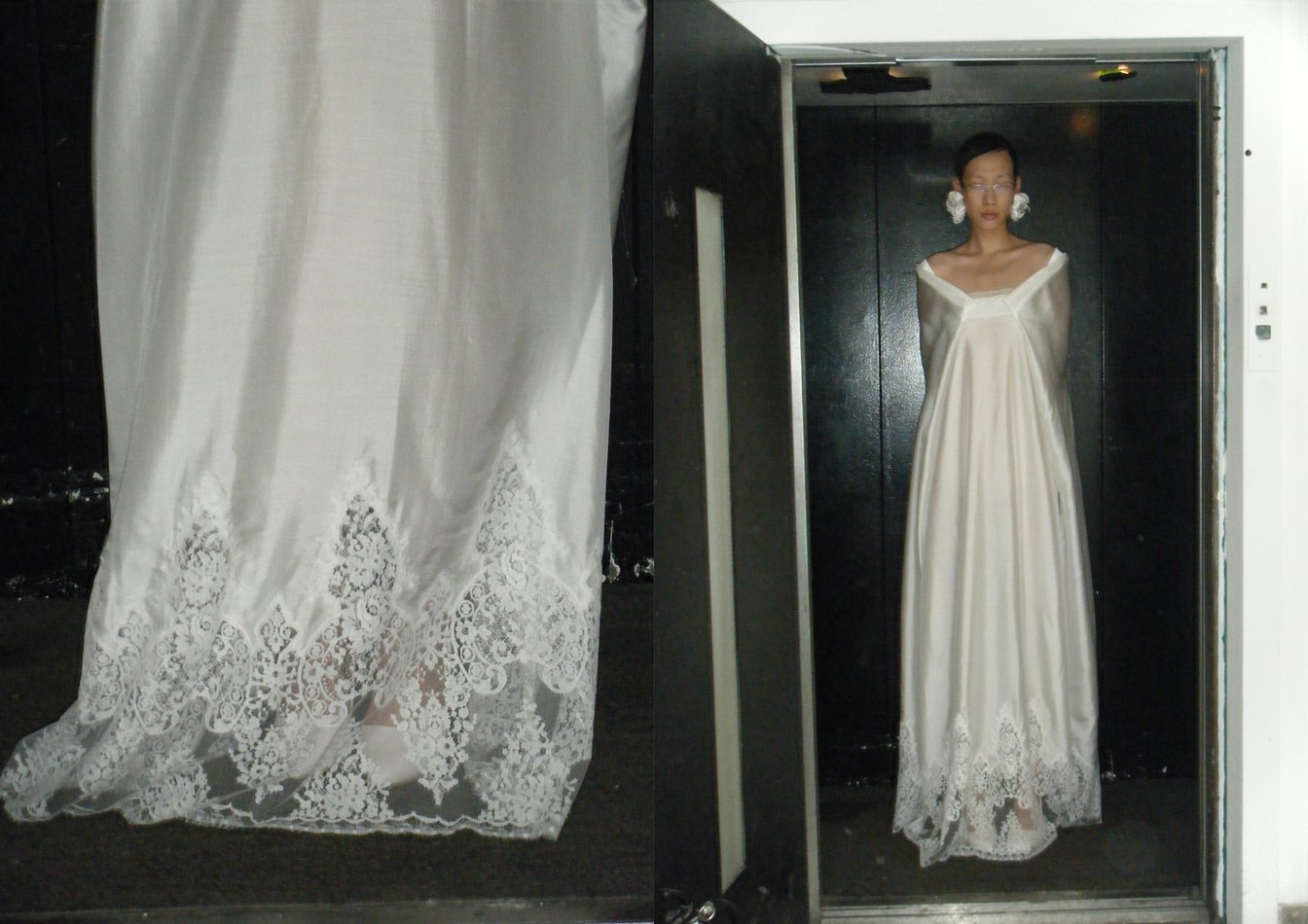 吉田は「ウィメンズの服を作っているのに、ウィメンズへの苦手意識がとんでもなくあった」と明かし「自分と向き合ってものを作る中で、自分と切り離す瞬間が遅いと理想とする女性に近づけなかった」とその理由について語った。理解をしようと試みた結果、理解した時には既に自分自身や愛着に極めて近い存在になり、手放しがたくなることは日常的にも覚えのある感覚だ。今シーズン、「頭の中でぼんやりと思い浮かべた女性像と自分の距離感を少し遠ざける」ことができたのは、デザイナー自身が「吉田圭佑が作っている以上は『ケイスケヨシダ』である」という図太さを少しだけ手に入れたこと、そして、一度は山頂である「ぼんやりと思い浮かべていた女性」になったことがある吉田だから許される芸当だろう。ブランドとして初めてウェディングドレスのようなイブニングドレスを発表し、女性である筆者が純粋に「それを着てみたい」と思えたのは、作り手である吉田の成分が極めて少なく、着る人への余白が残されていたからに他ならない。