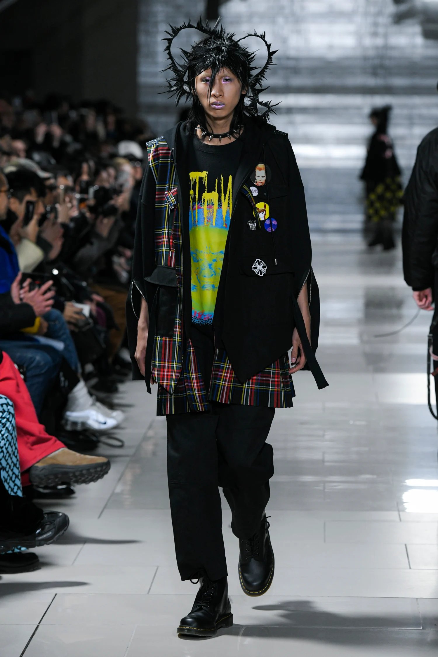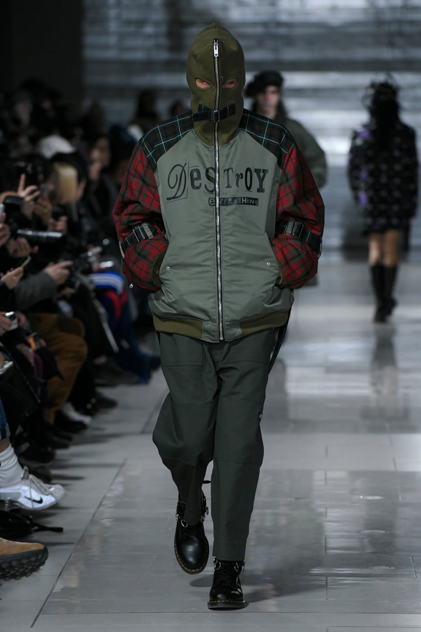 そして、「初期のパンクを創造した偉大な先人たちが去ったとしても、現代、あるいは現代人にさまざまな影響をもたらしたパンクの本質を終わらせないことが役目である」と、初期パンクのクラシシズムと現代性の交わりを探求。タータンチェックと迷彩柄を混在させたアイテムをはじめ、過剰なダメージ加工のデニムやニット、ショルダーおよびアーム部分を複数の柄で切り替えたMA-1など、様式化されたスタイルにDIYの考えに基づくリブートを施すことで、“抗議(反抗)の精神”の形で継承されてきたパンクのムードを放つ。
