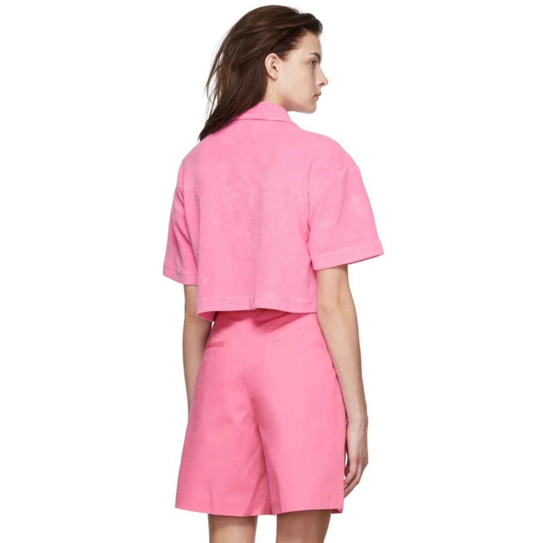 キャンディーのようなポップなピンクのポロシャツとハーフパンツは、セットアップでのスタイリングがおすすめです。ポロシャツはストレッチ性の高い薄手のパイル地、ハーフパンツはハリのあるオーガニックコットン生地を採用。異素材ならではのグラデーションを効かせた、プレイフルな着こなしが楽しめます。