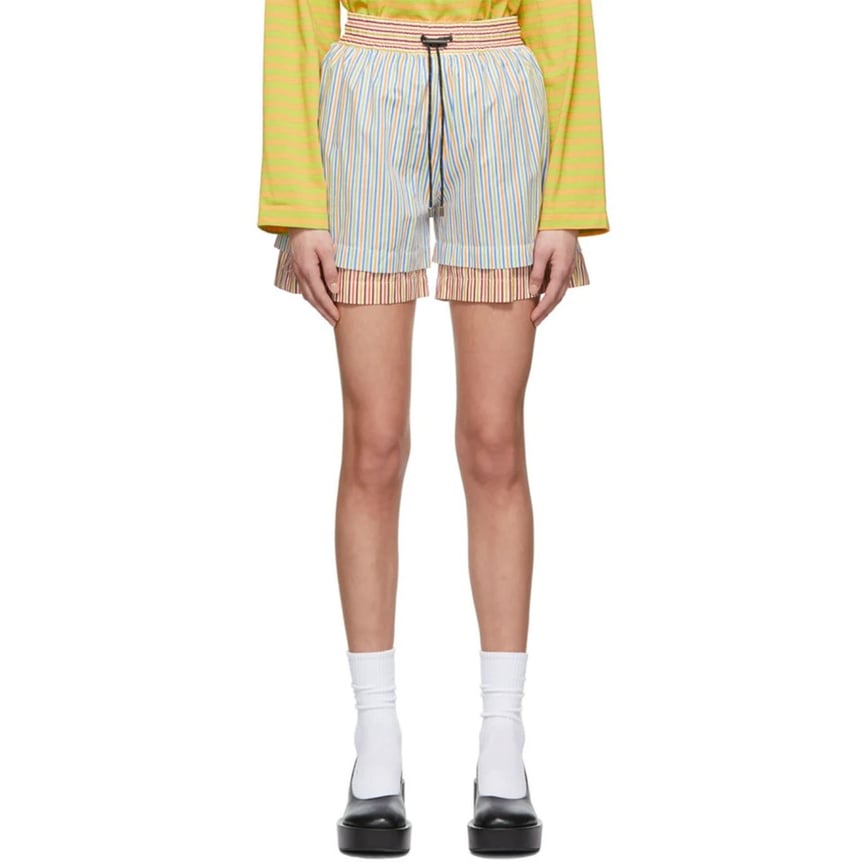 涼しげなストライプ模様のショートパンツは、シャツで使われているコットンポプリン素材を使用しているので軽い着心地がクセになる一着。レイヤードがされているので透ける心配は無く、暑い夏も活躍してくれます。