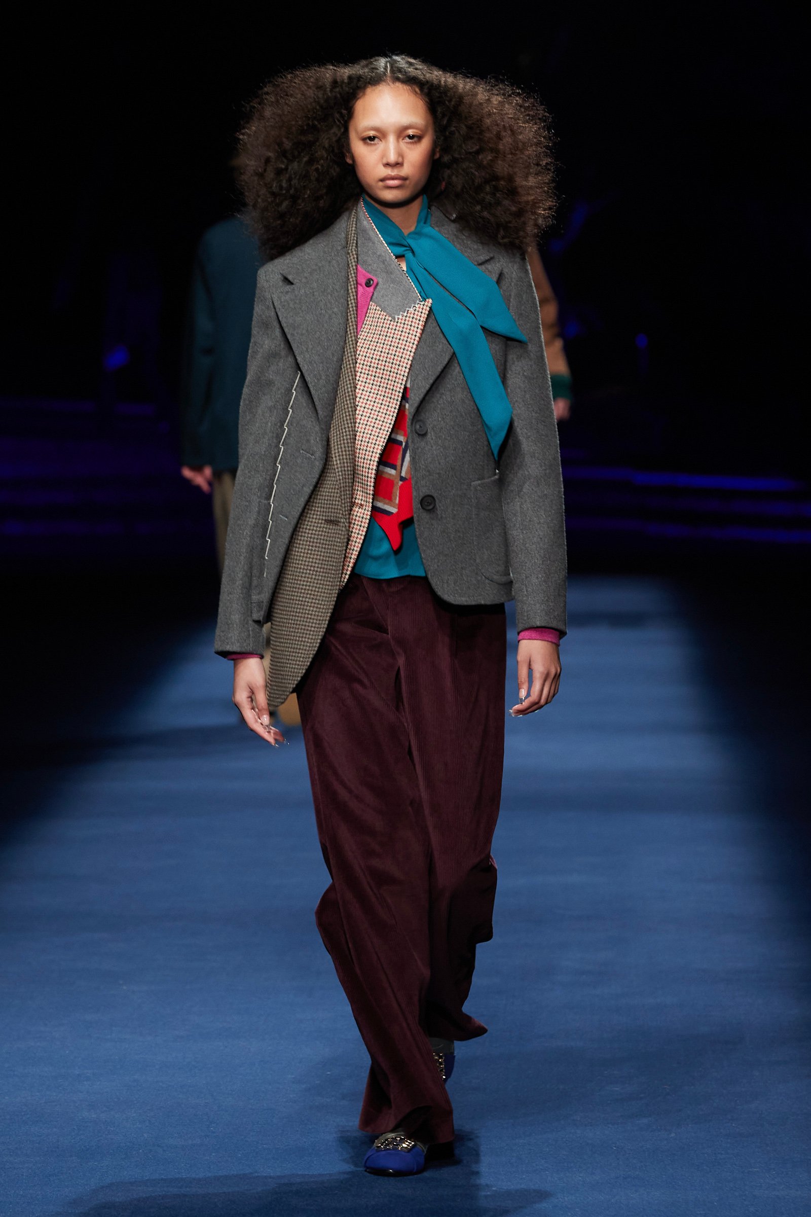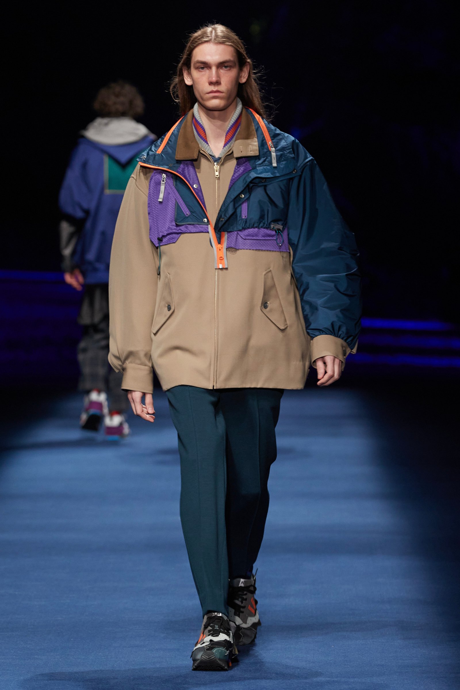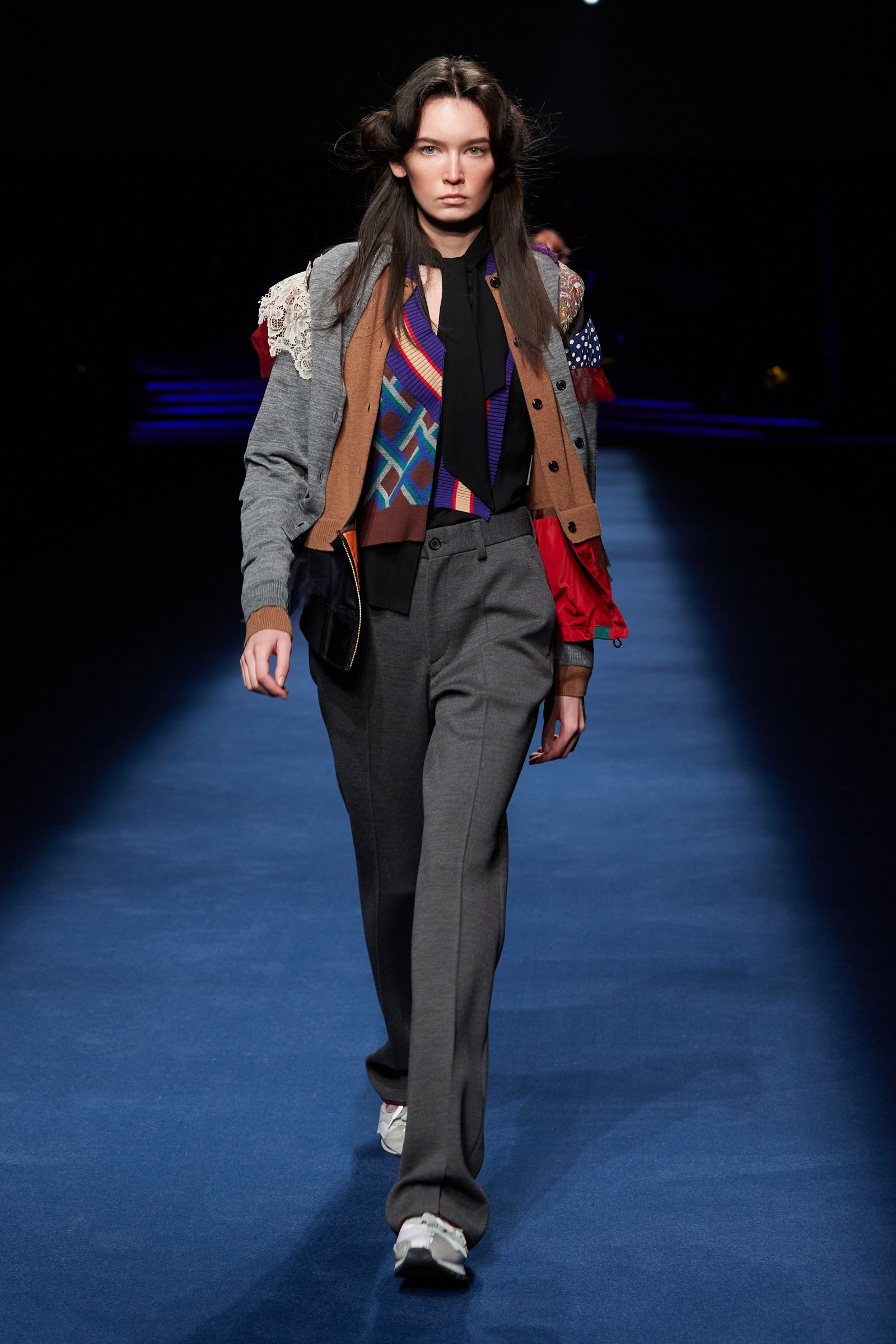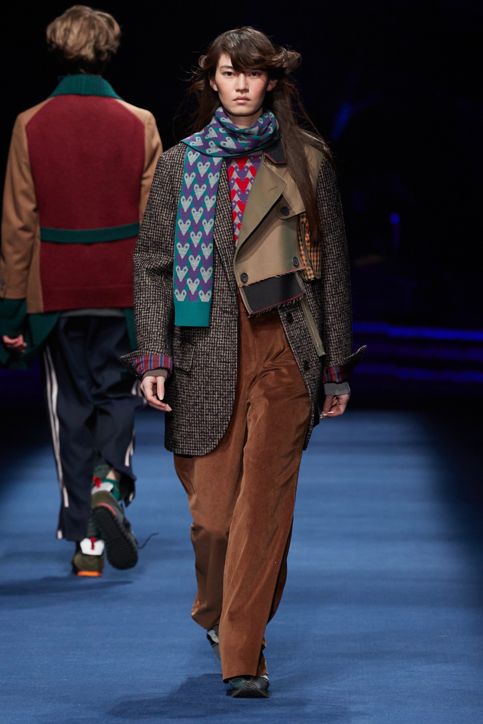 多種多様な素材やパターンのドッキング、マルチなカラーミックスといった、あらゆる要素を融合した絶妙なバランスは阿部の真骨頂。左側は通常のテーラードだが右側は3つの異なるラペルが重なるジャケットなど、レイヤードやアシンメトリーといったユニークなテクニックを惜しみなく盛り込んだ。2021年春夏コレクションから更に進化した印象で、スポーツやフォークロアなどのカルチャーを混ぜ合わせながら、複雑な構造や意外な組み合わせも洗練されたスタイルにまとめ上げている。時代に流されない攻めのデザインによって、鮮やかで色濃いカラーの今を見せた。