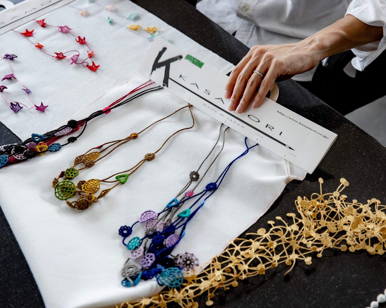 一番褒めていただけるのはやはり軽さですね。あとは、金属アレルギーでアクセサリーを楽しみづらかった人から喜びの声をいただくこともあります。「作ってくださってありがとうございます」といった嬉しいメッセージは本当に励みになりますし、社員一同、定期的に読み返して喜んでいます(笑)。あと、購入者ではないですが、川上の人たちにも喜んでいただけているのかな、と。例えば、糸の撚り付け職人の人たちは、自分たちが撚った糸がどのように縫われ、形になり、世の中に出ていくかをほとんど知らなかったそうなんです。なので「自分の撚った糸がアクセサリーになり、それを身に着けた多くの人が喜んでくれている」という事実は、彼らにとっても嬉しいようで、そういう循環を作れて本当に良かったなと思っています。