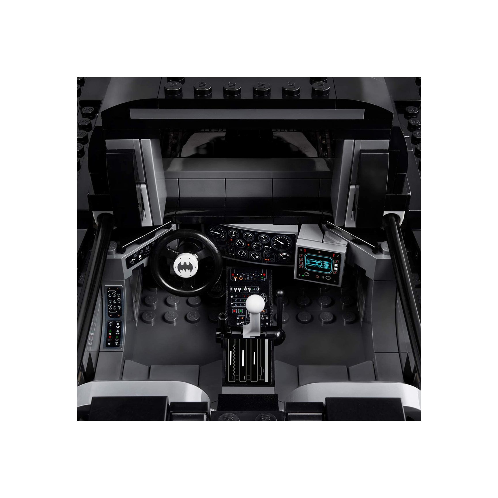 1989年のティム?バートン(Tim Burton)監督版の映画「バットマン(Batman)」に登場するバットモービルのレゴブロックです。もちろん、スライド開閉式のコックピットには付属フィギュアを搭乗させられます。お馴染みの隠しマシンガンの装備もばっちり。完成後、回転式のディスプレイスタンドに飾ってあらゆる方向から眺められます。ファン必携のアイテムですね。