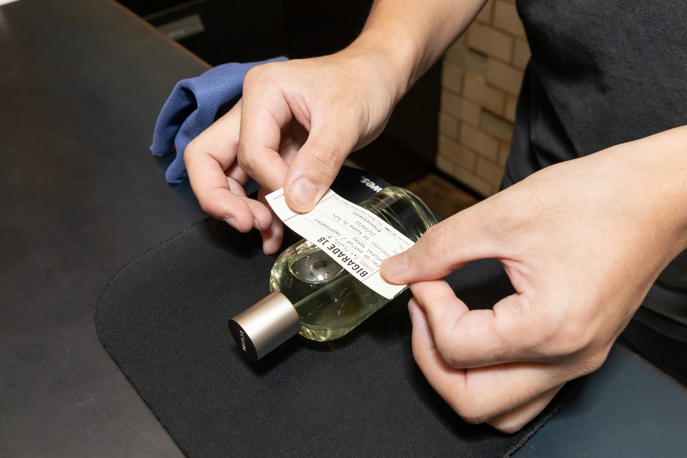 ル ラボ 京都に来たからには、店頭でのフレッシュ ブレンディングも見逃さないで。注文を受けてから、選んだ香りをその場で調合してくれるのです。店内奥のラボでフレグランスがブレンドされる様子を見学するのも◎ 丁寧に作られていることがわかります。