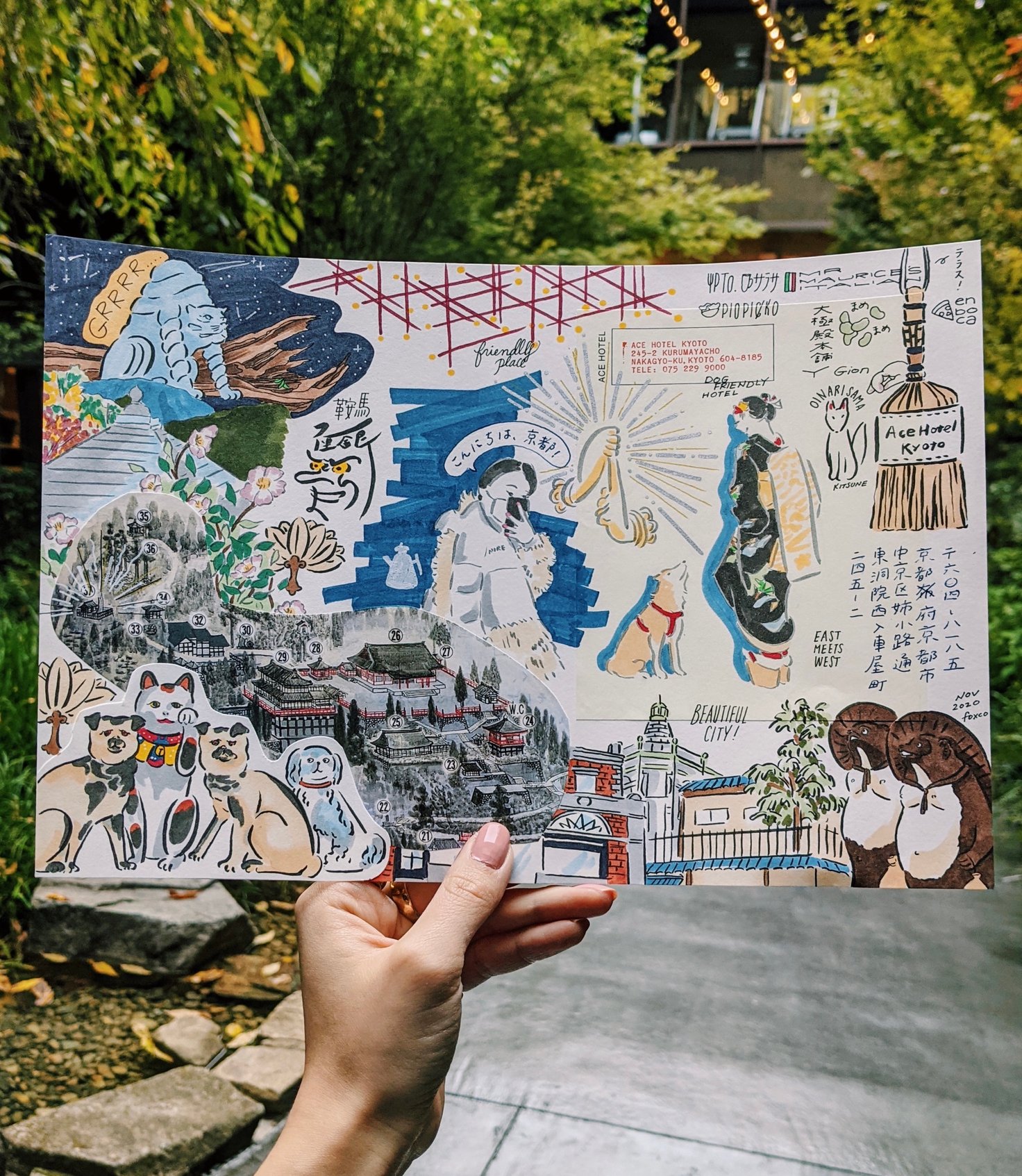 個展開催時に京都を訪れた際、巡ったスポットをお手製の地図に。こちらも#foxcotravelで紹介したそう。