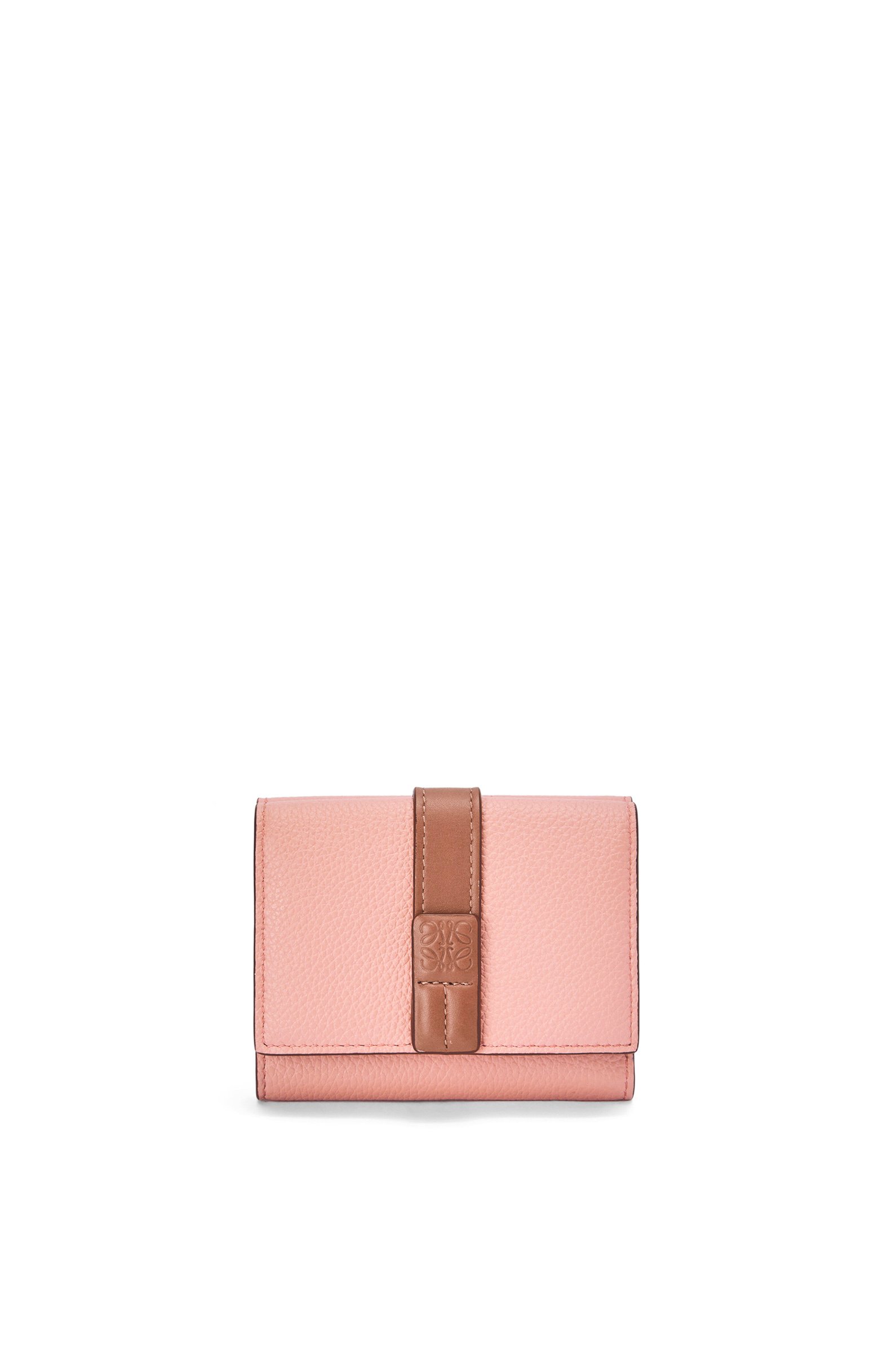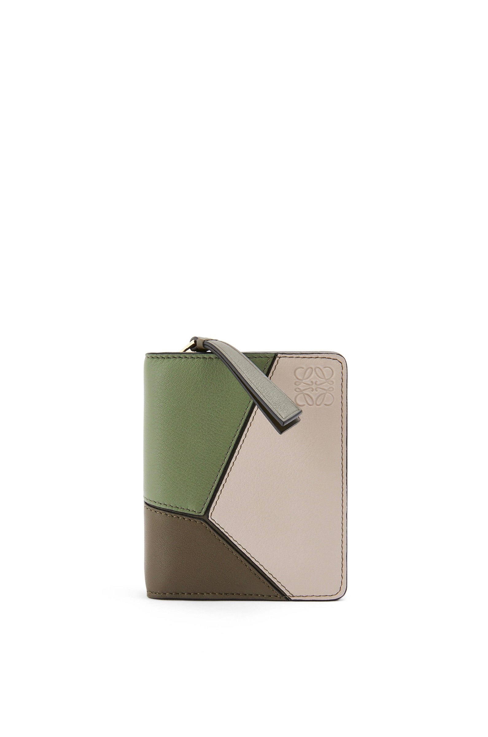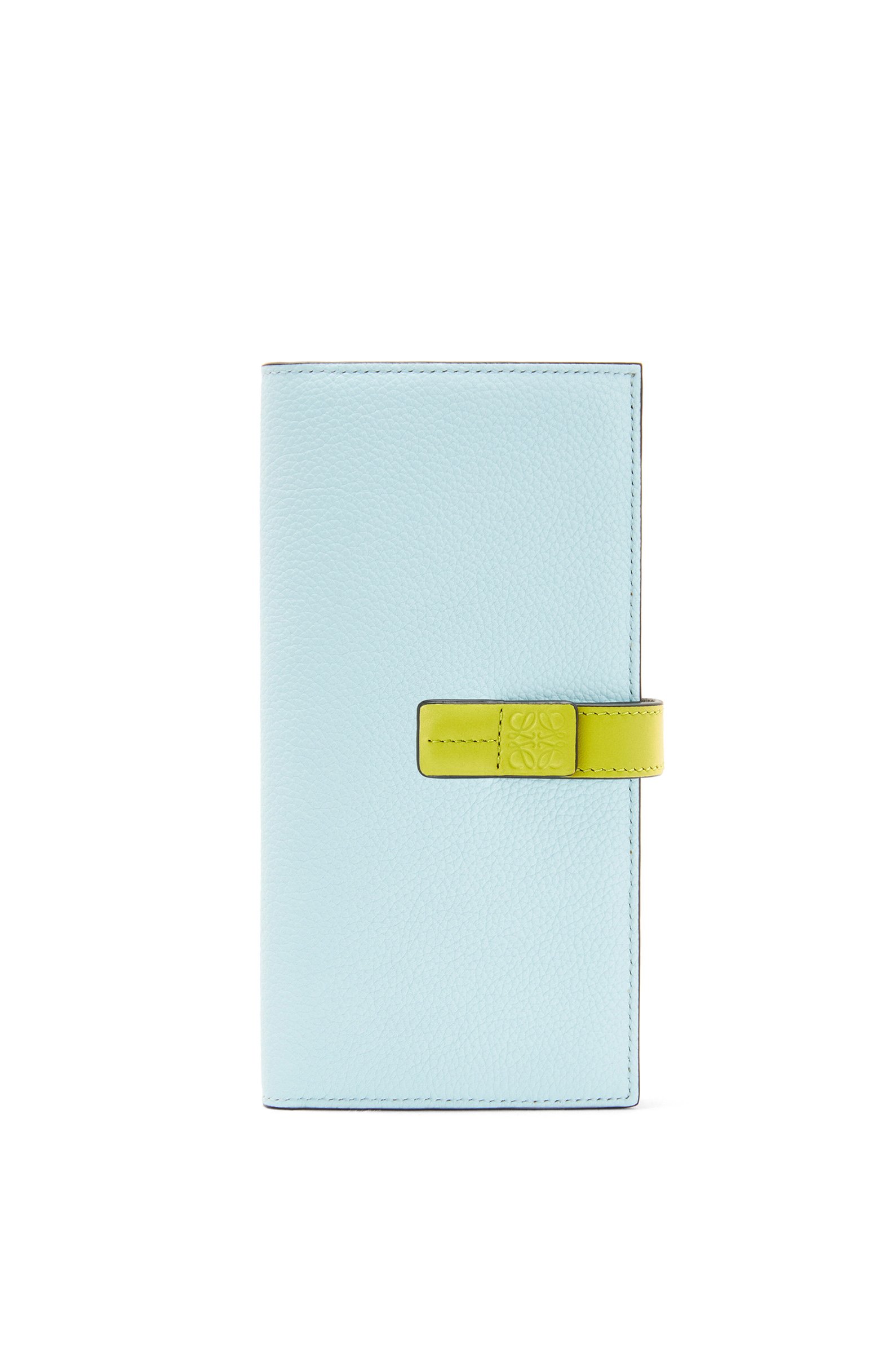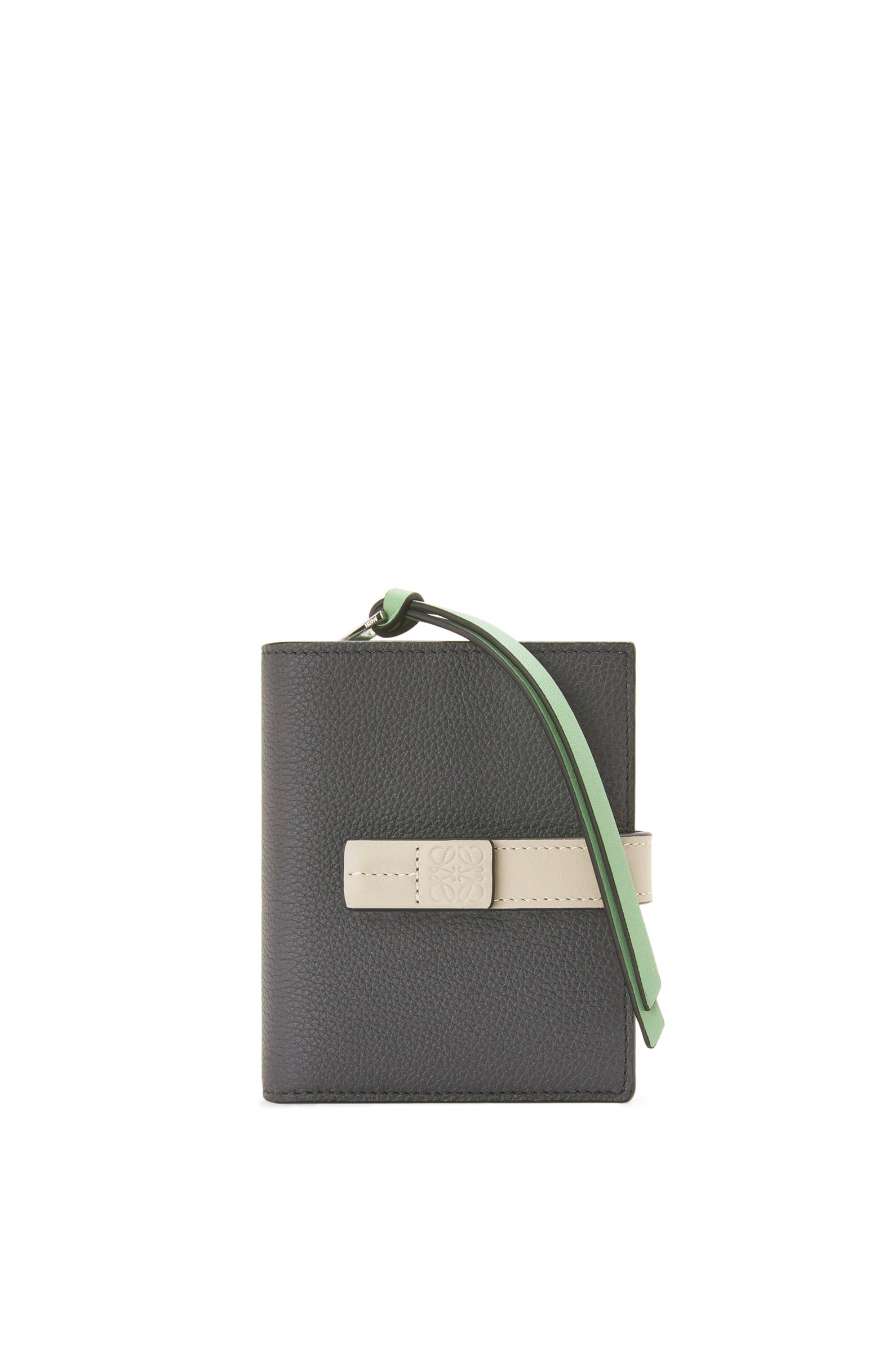 1つ目は、ロエベで一番人気の三つ折りタイプのウォレット「バーティカル ウォレット スモール(ソフトグレインカーフ)」。スナップ付きのタブがアクセントで、開けやすさも◎。カラー展開が最も豊富な13色の中から、萬波さんは新色のマーブルグリーン/アッシュグレーをセレクトしました。