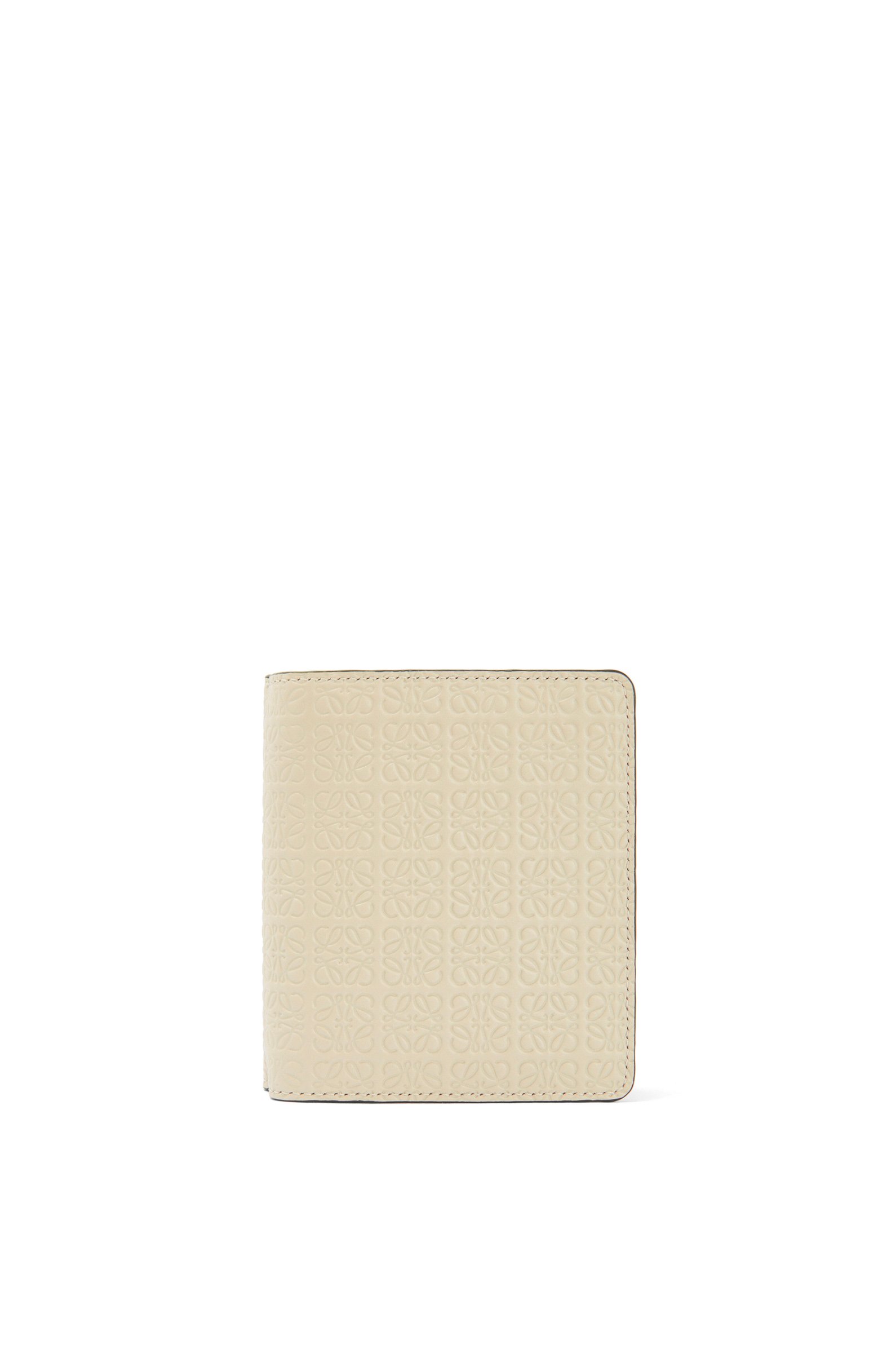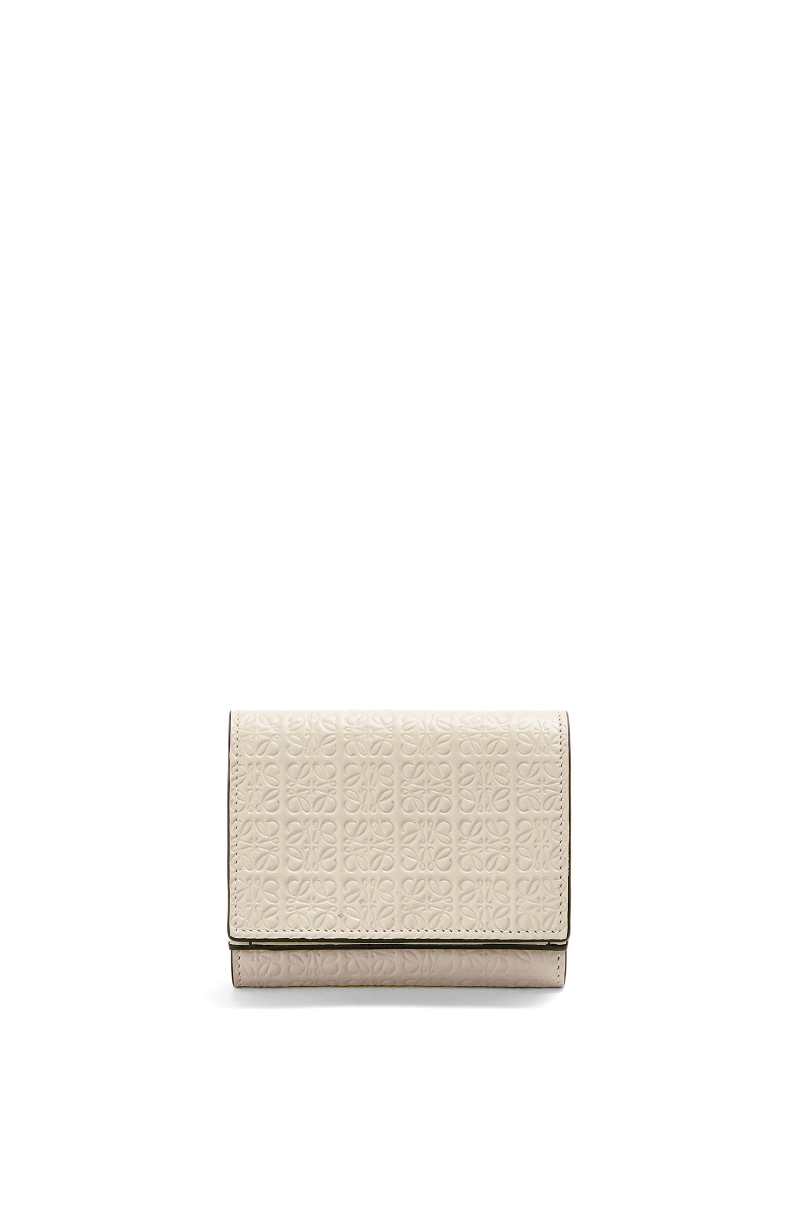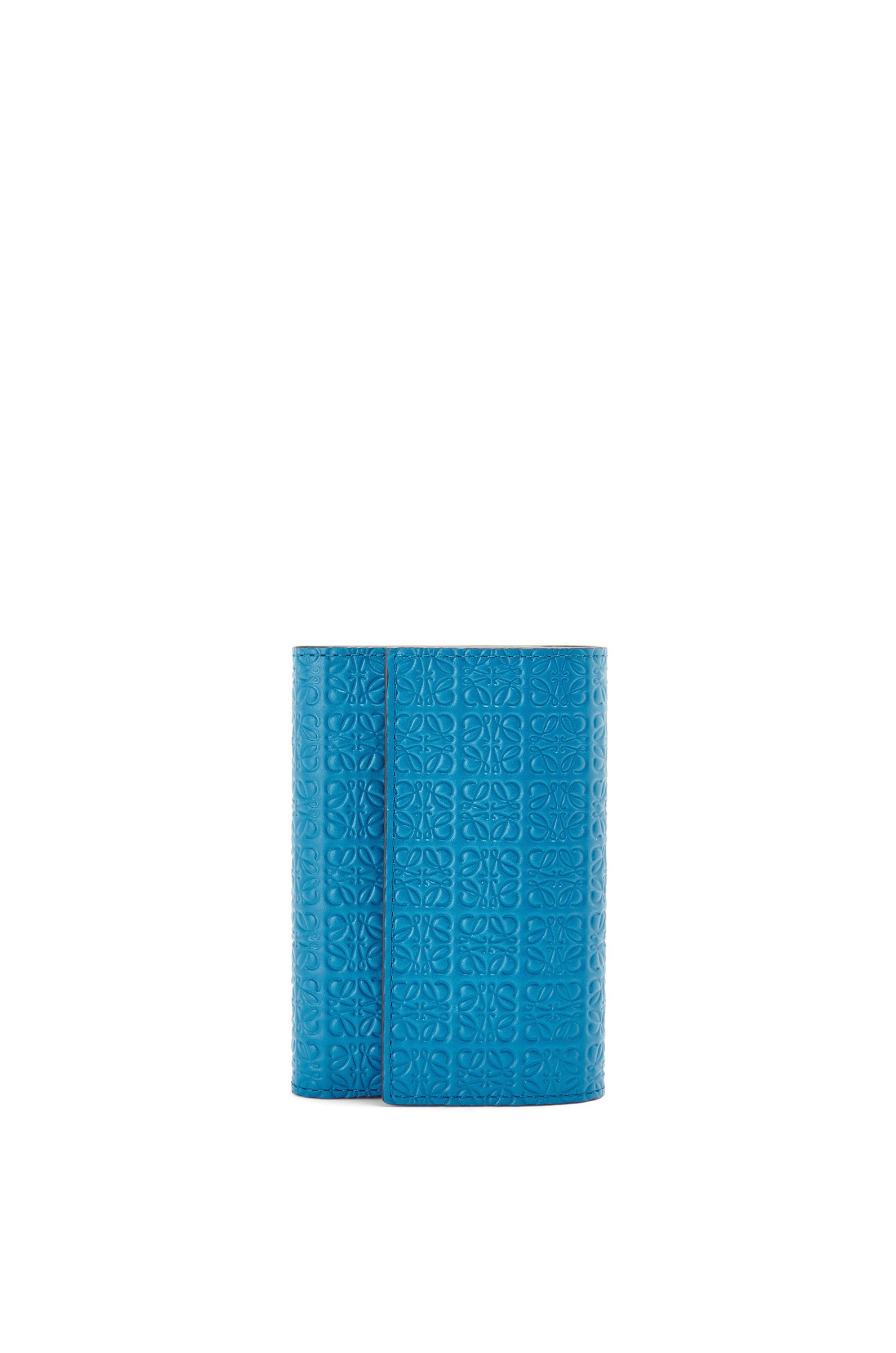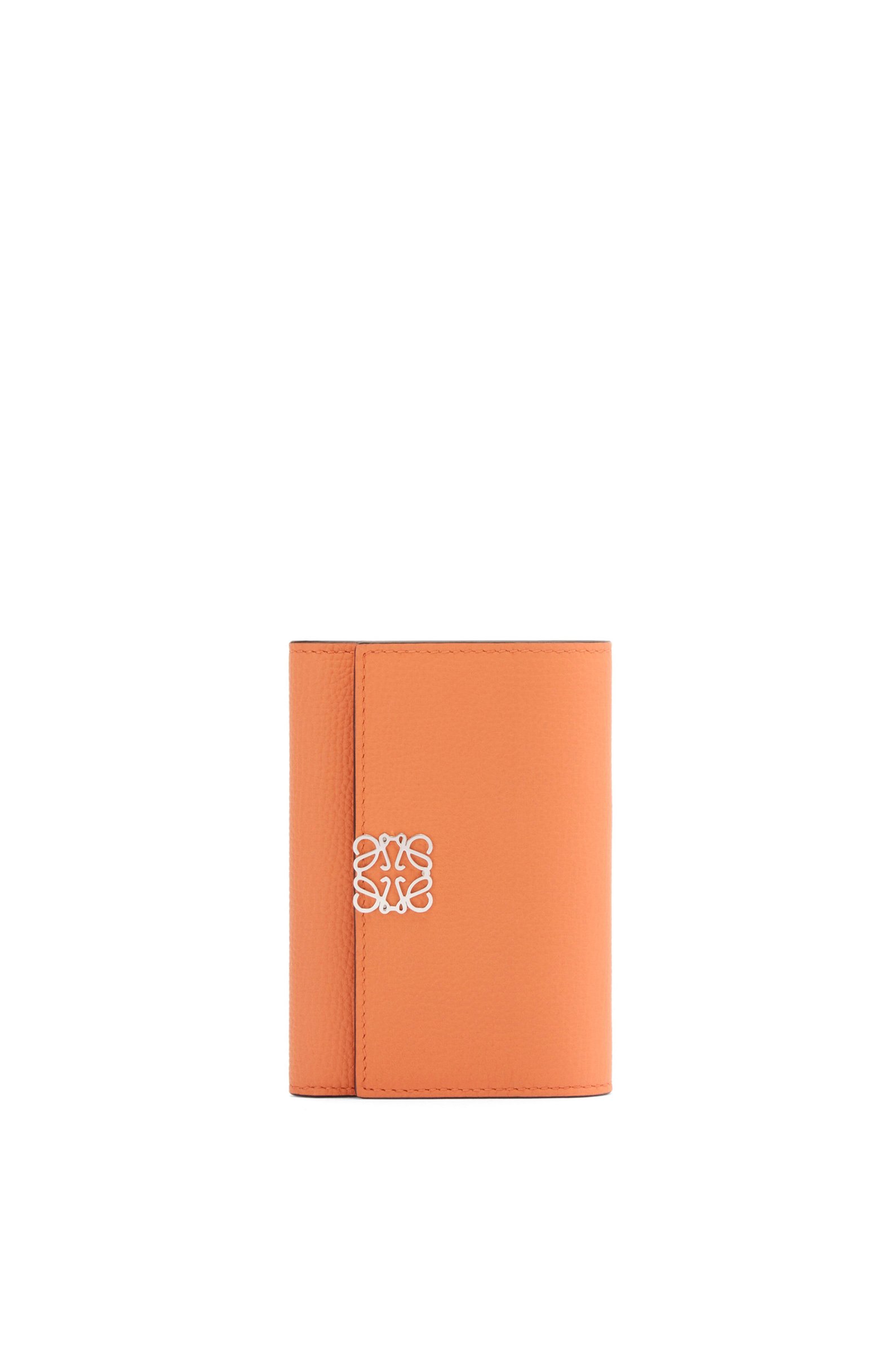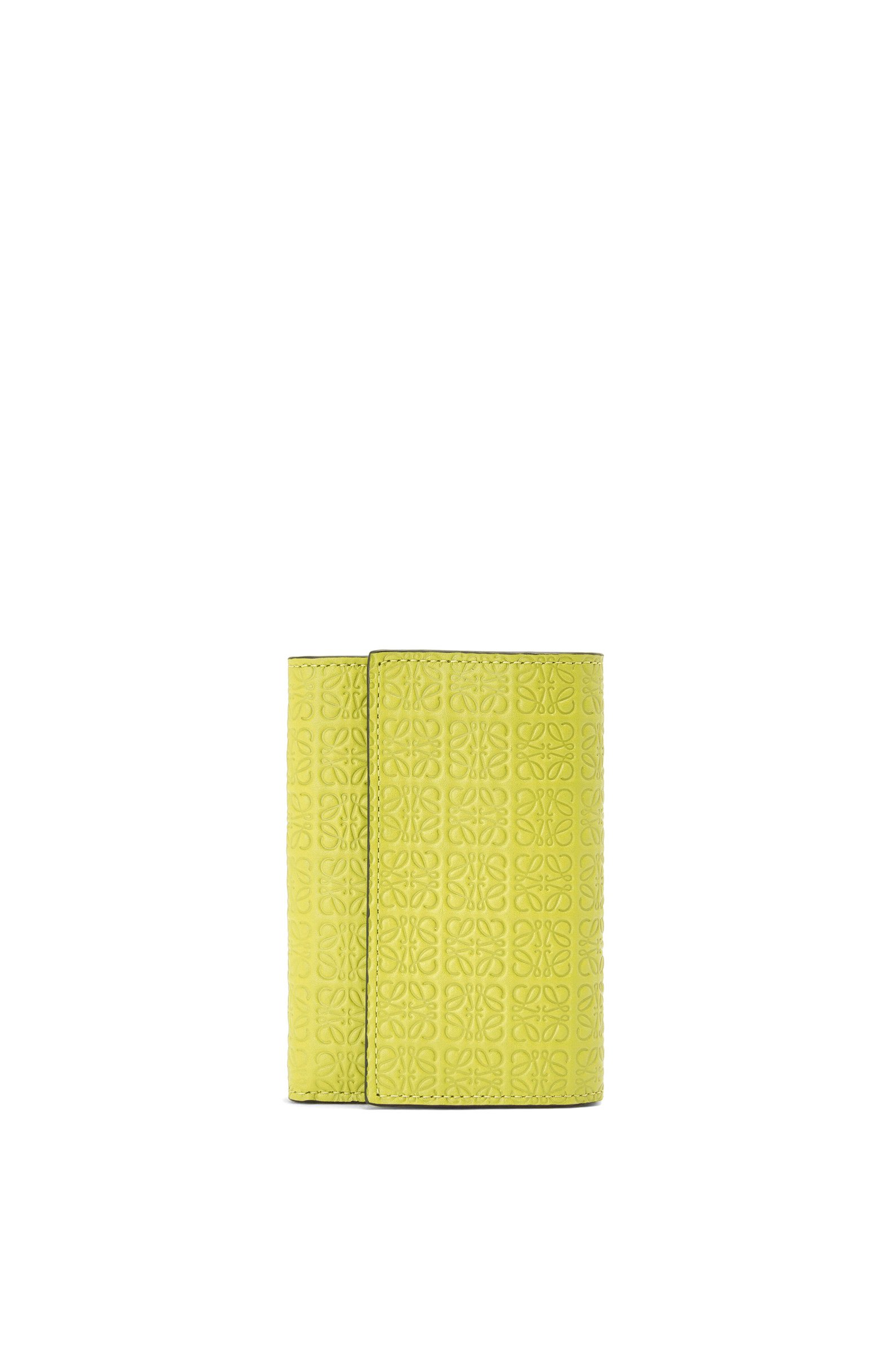 2つ目も同じく三つ折りの「バーティカル ウォレット スモール(エンボスシルクカーフ)」で、エンボス加工のスモールリピートアナグラム柄。カラーはアボカドグリーン。