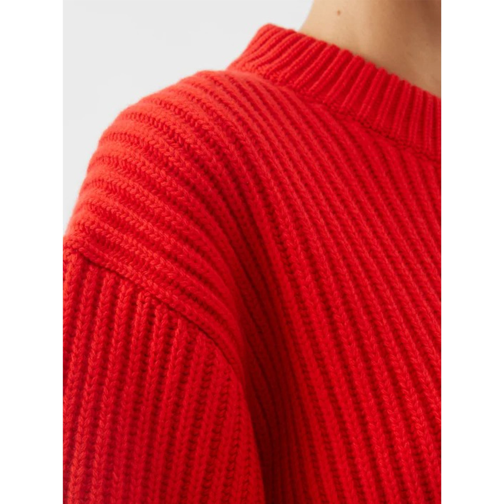 タフテッド製法を用いた「アクネ ストゥディオズ(ACNE STUDIOS)」のウール混セーター。体をすっぽり覆うサイジングが可愛い1着。ダークトーンになりがちな季節こそ、これくらいフレッシュなオレンジがよく映えます。