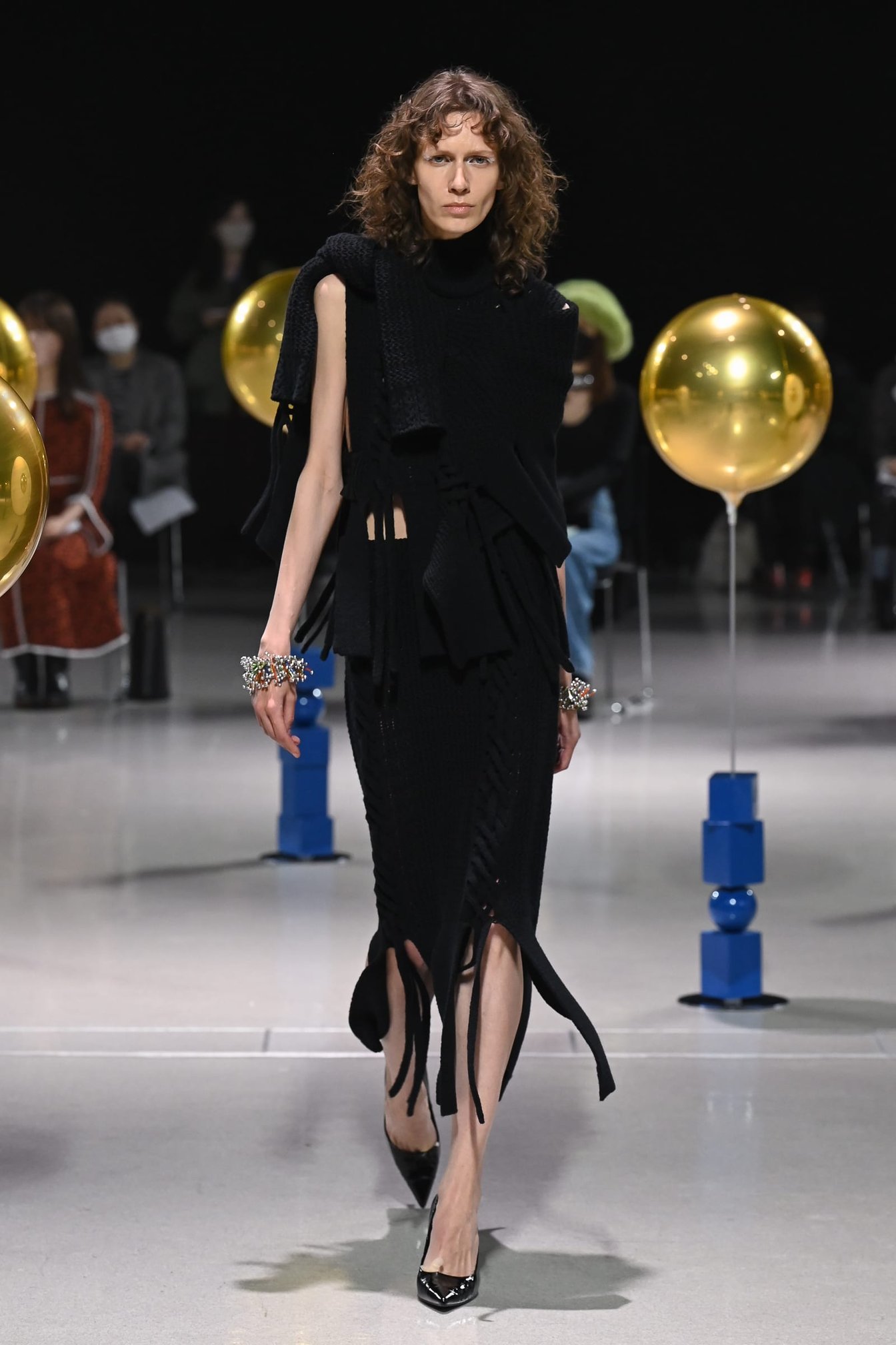 一方で小高の知性と緻密な作業を通して作り出されたアイテムは、温かみがありながらも、恐怖心や孤独感も抱かせる。彩度の高い服から一変、ショー終盤で登場した黒いルック4体がその最たるものだろう。どんな色でも塗りつぶすことができる黒色のルックを、鮮やかな服が続いたショーの1番最後に配置した事実が、思い出したくても思い出せない記憶や漠然とした恐怖など、人が心の何処かで常に抱えている不安感を思わせる。小高は黒い服について「黒は強い色かつ、誰にでも似合う服」と説明した。