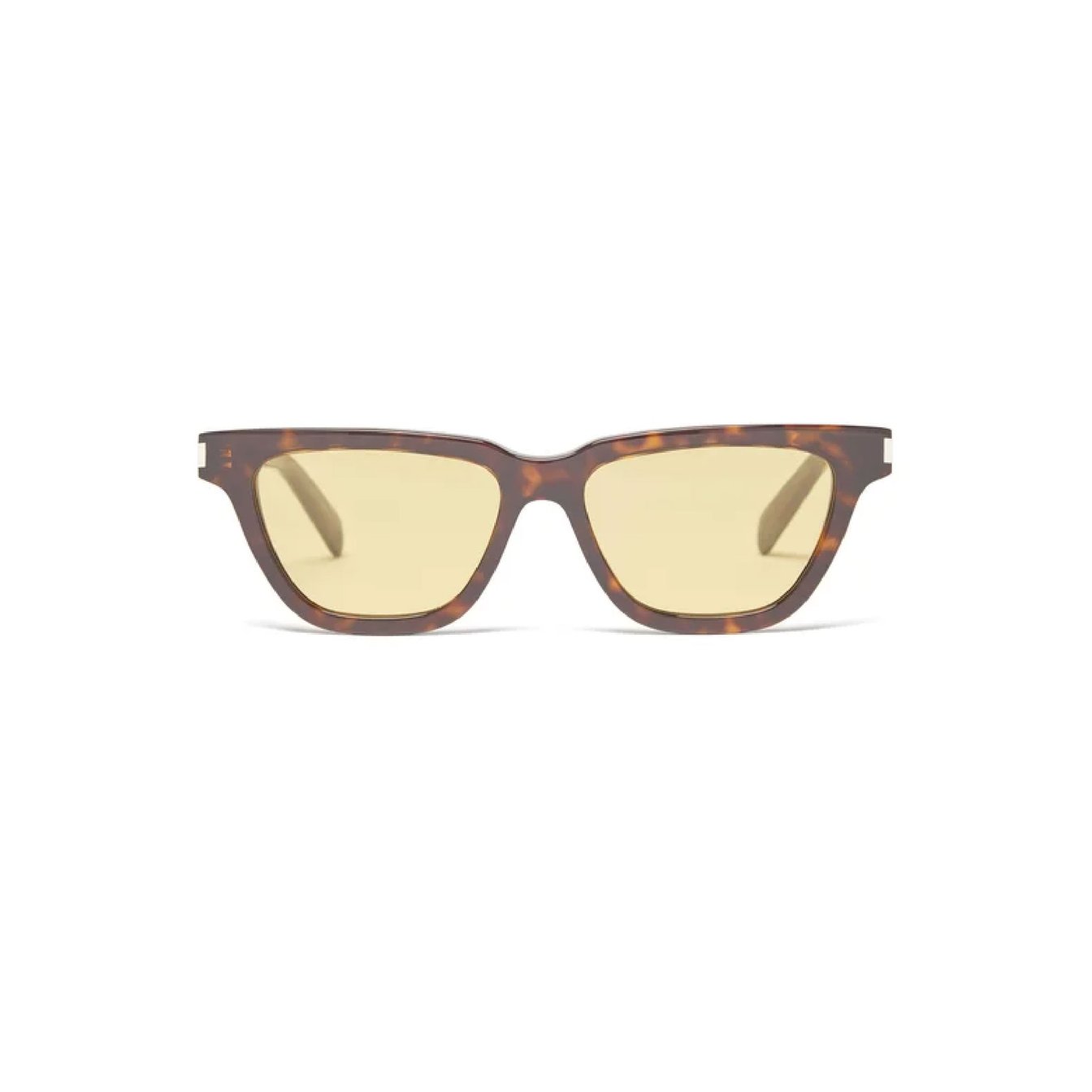 光沢感のあるべっ甲のアセテートとイエローレンズで肌馴染みも良く、透け感レンズに躊躇のある方も取り入れやすいデザインは「サンローラン(SAINT LAURENT)」のもの。クラシックでタイムレスなアイテムです。
