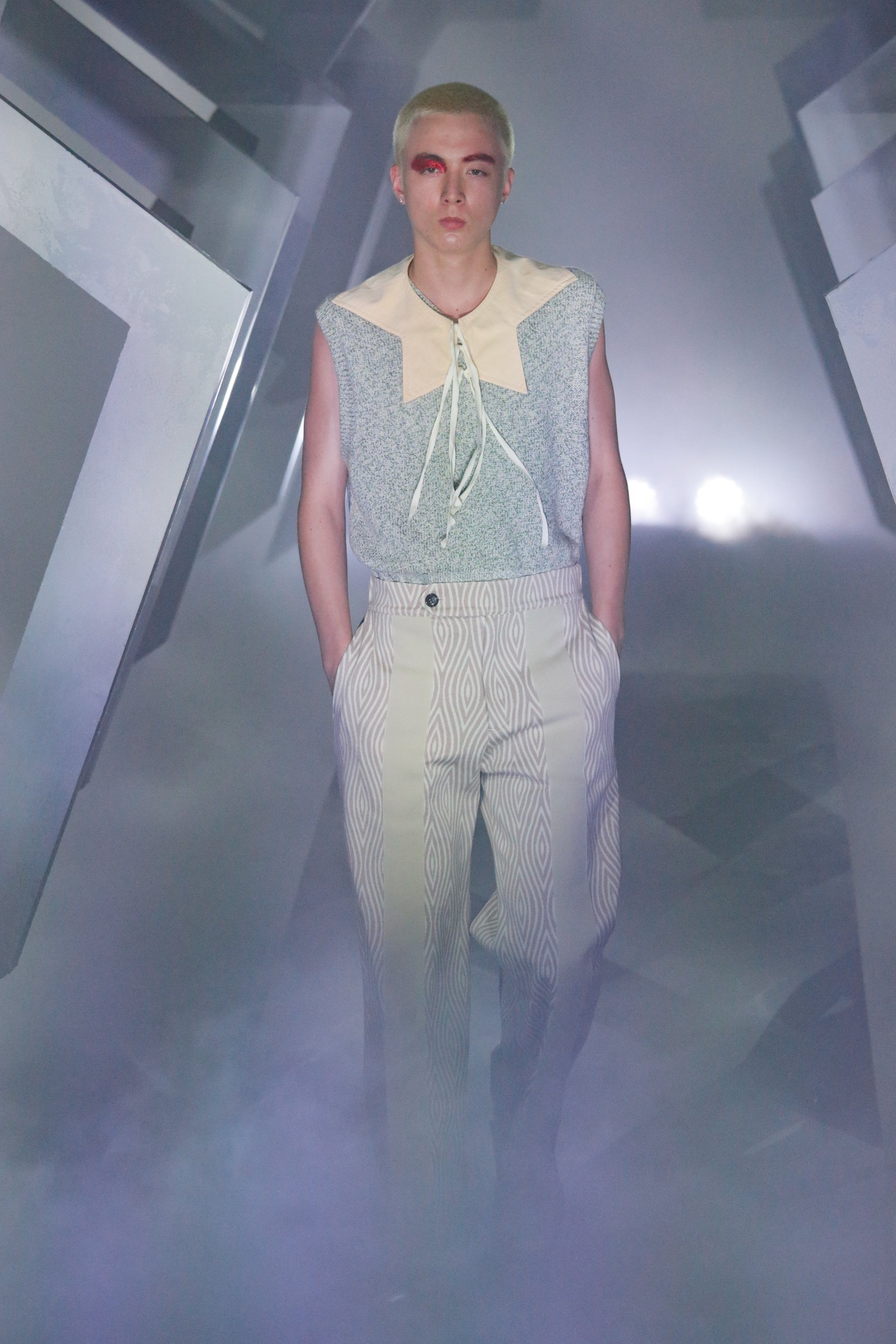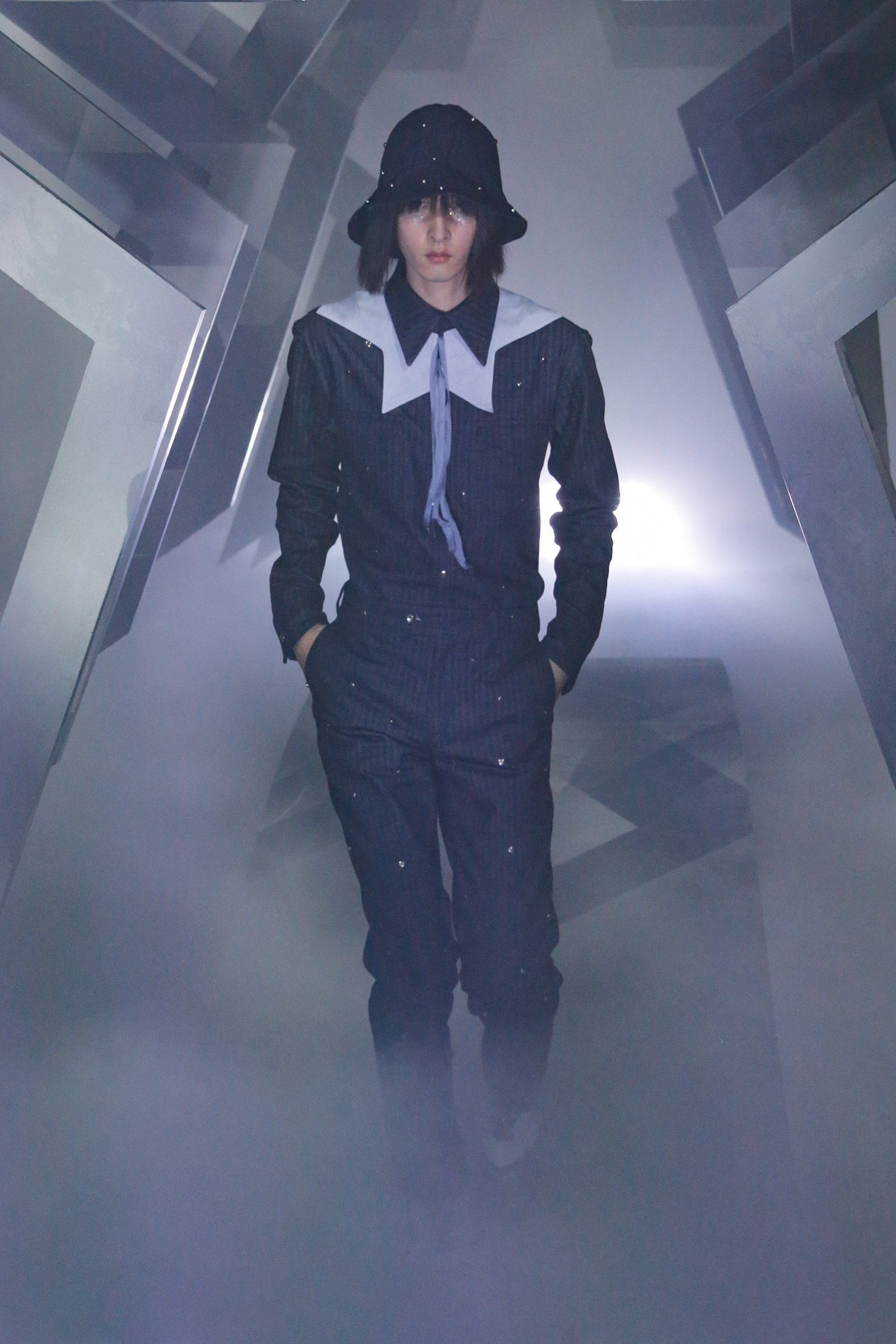 デザイナー後藤愼平が手掛ける「エムエーエスユー(M A S U)」が、2022年春夏コレクションをランウェイショー形式で発表した。会場は天王洲アイルの寺田倉庫 Warehouse TERRADA。星形のオブジェクトとスモークで演出されたショー会場で、パンク?スタイルのローファイロックバンド「ウォーター(Waater)」の生演奏の中、最新コレクションが披露された。