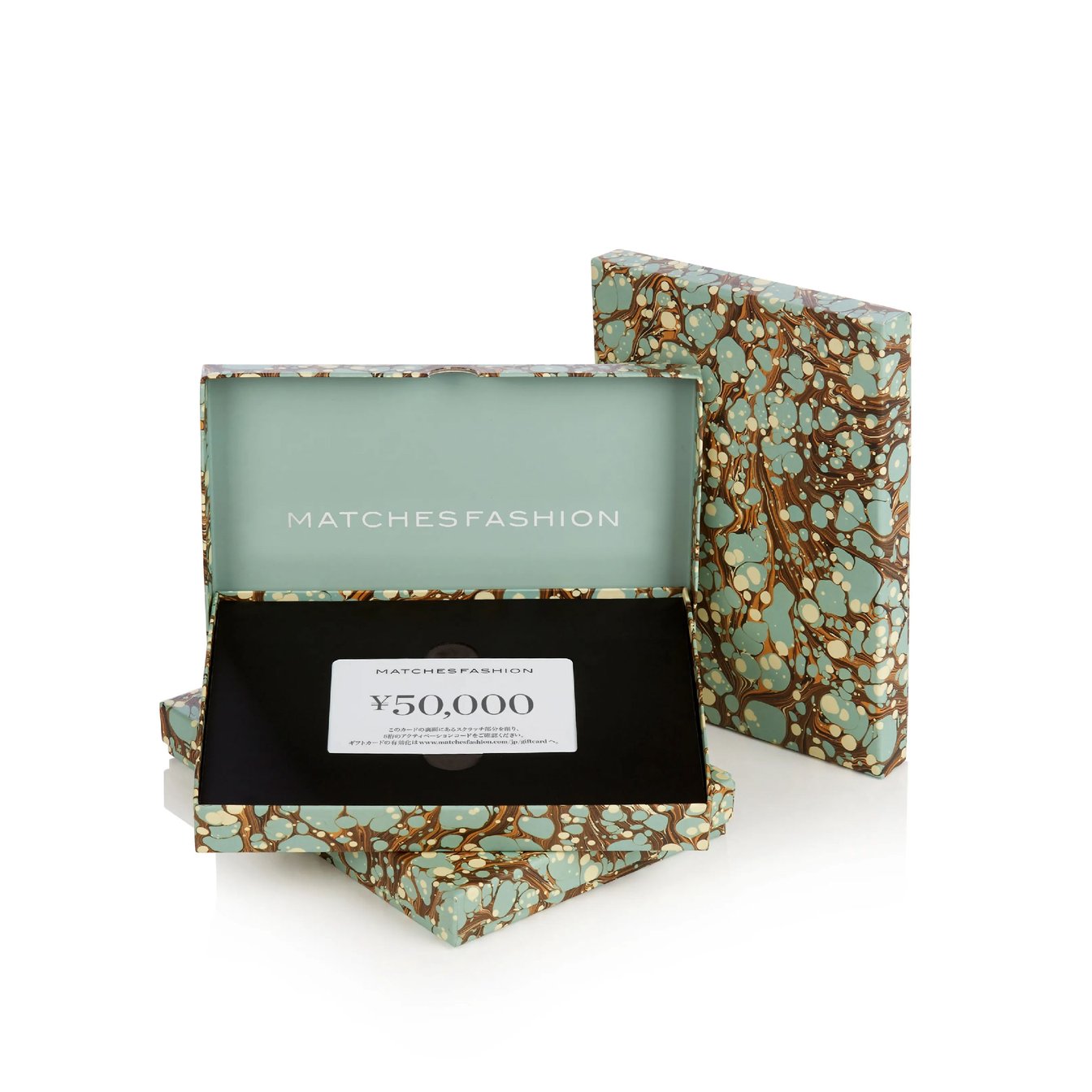 マッチズファッションでは、サイト内で自由にお買い物を楽しめるギフトカードを発売しています。好みやこだわりのあるファッションアイテムを、楽しく選んでもらうためにギフトカードをプレゼントするのもおすすめ。¥20,000~¥500,000までの金額を設定し、パーソナルメッセージを添えて贈ることができます。