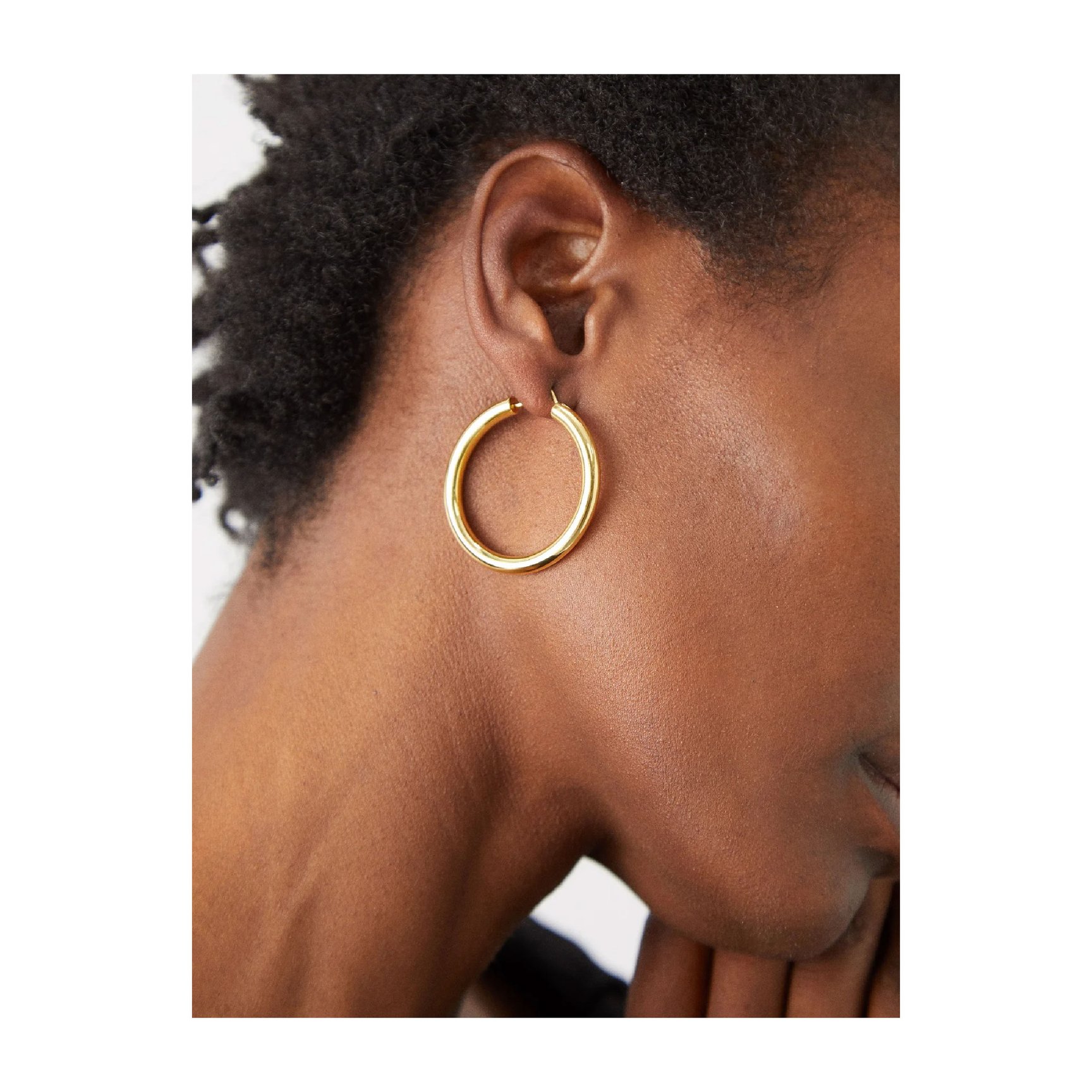 グラマラスなムードを演出する大胆なジュエリーは、コーディネートのアクセントとして魅力を発揮する頼もしいアイテム。「セオドラ ウェア(THEODORA WARRE)」のフープピアスは、デイルックからパーティシーンまで、輝きと共にスタイリングをポジティブに彩ります。