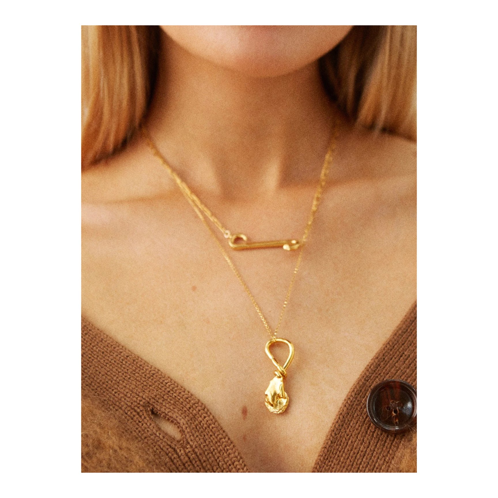 1万円台で叶うジェンダーレスなお守りジュエリー、「ミアンサイ(MIANSAI)」のネックレス。華奢なチェーンで繋がれたペンダントには、身につける者を守護し、力をもたらすと言われるモチーフを採用しています。