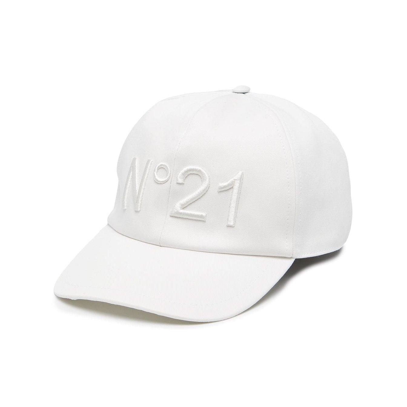 最後にご紹介するのは、オールホワイトが眩しい「ヌメロ?ヴェントゥーノ(N°21)」のキャップ。立体的に刺繍でデザインされたロゴがシンプルながらピュアな存在感を放つ、身に着けるだけで明るく洗練されたスタイリングを叶えるアイテムです。