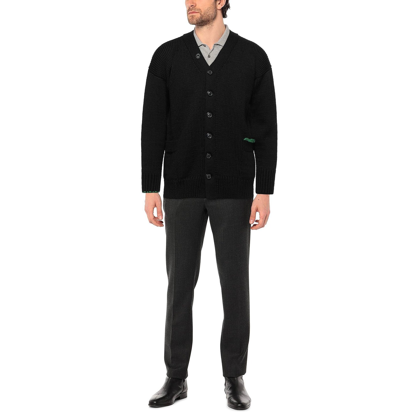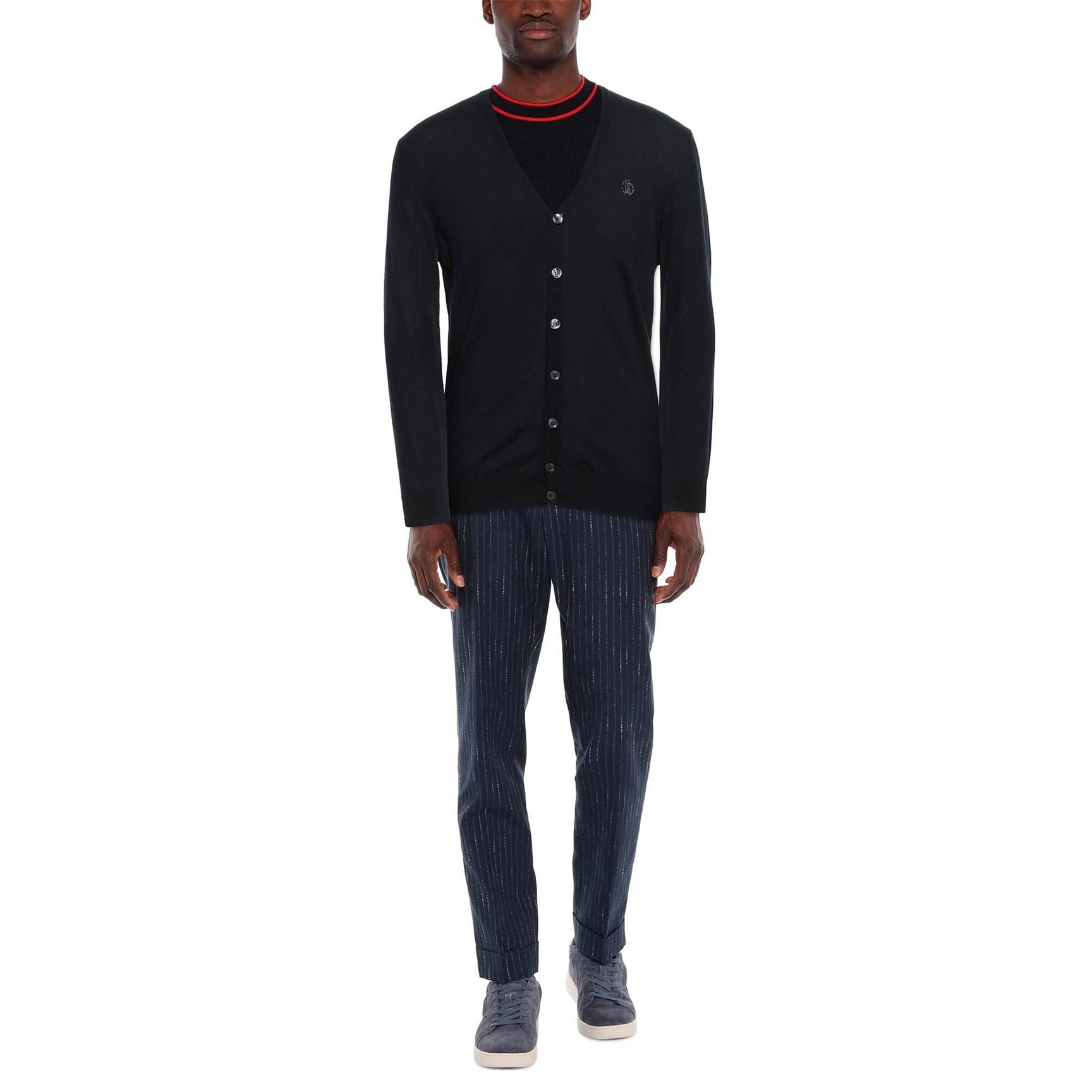 最初にご紹介するのは、すっきりとしたシンプルなデザインが嬉しい「ロベルト?カヴァリ(Roberto Cavalli)」のカーディガン。胸元にパッチされたエンブレムが紳士に覗く、着回しやすいアイテムです。カシミヤ混の生地ならば、暖かさも滑らかさも申し分なし。