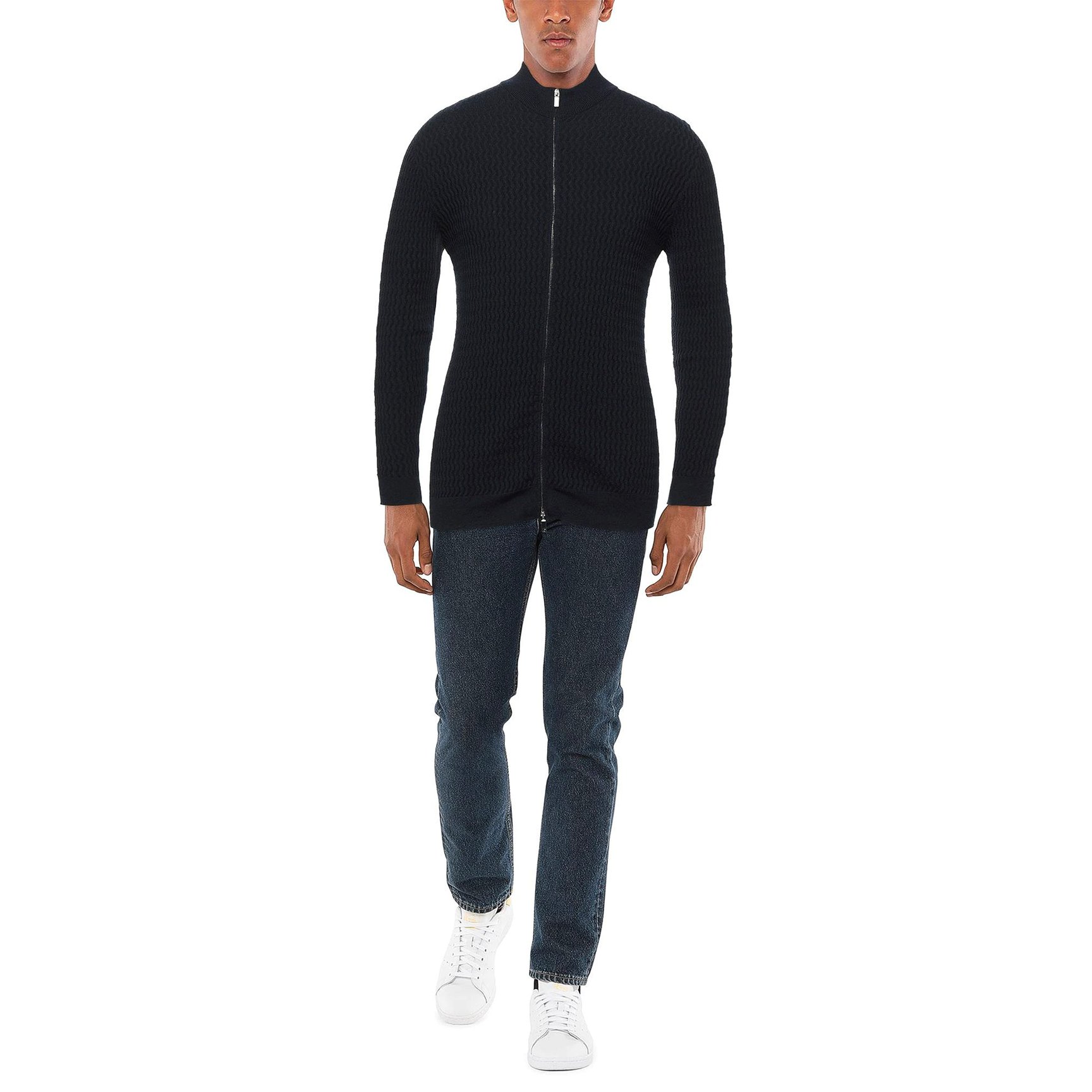 使い勝手の良いジップアップを採用した、「ジョルジオ アルマーニ(GIORGIO ARMANI)」のカーディガン。スポーティな雰囲気と、ジグザグに編み込まれた生地がスタイリッシュな印象です。カラーやサイズもまだ選べるので、自分にフィットする一枚を早速キープしてみては?