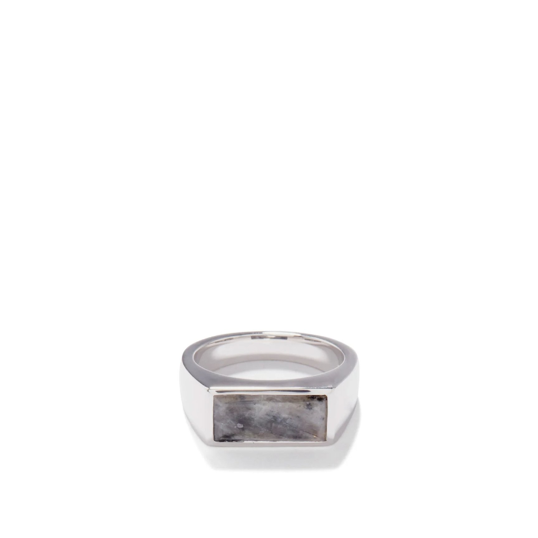 「トムウッド(Tom Wood)」のからは、センス溢れる手元の輝きを演出できるリングをチョイス。スターリングシルバーにセットされたストーンは、バゲットカットされたラルビカイト。グレーとブラックが混ざり合ったクールな表情と、冷静や安静をもたらすとされるストーンのパワーを堪能してみてはいかが?