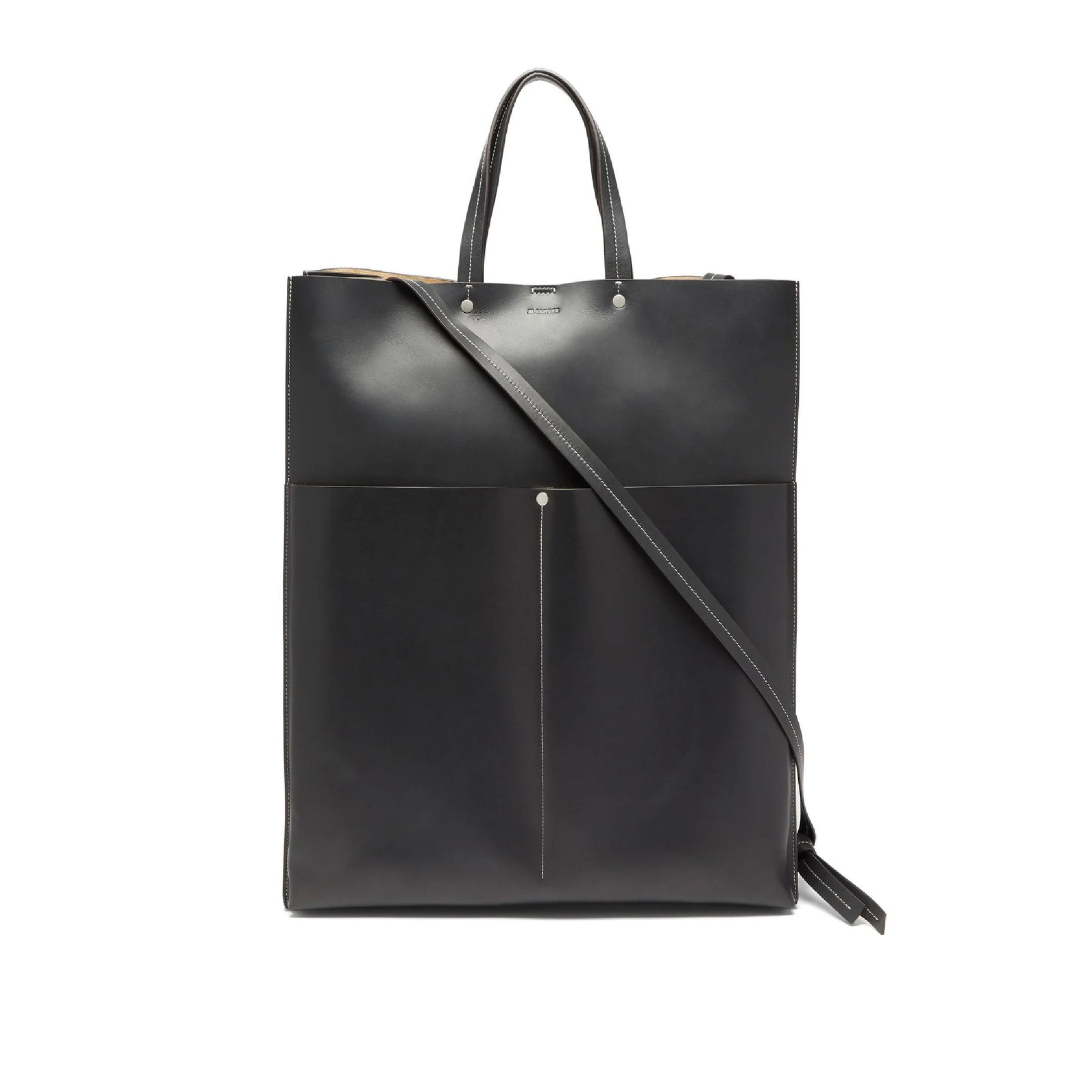 オンオフ兼用で頼りになるトートバッグは、「ジル サンダー(JIL SANDER)」からチョイス。前面にスリップポケットを2つ装備し、滑らかなカーフスキンレザーレザーで構築されたデザイン性も収納力も文句なしのバッグは、実用性をアップさせるショルダーストラップもセットになっています。サイズは約 38cm(幅)× 46.5cm(縦)× 13.5cm(マチ)。