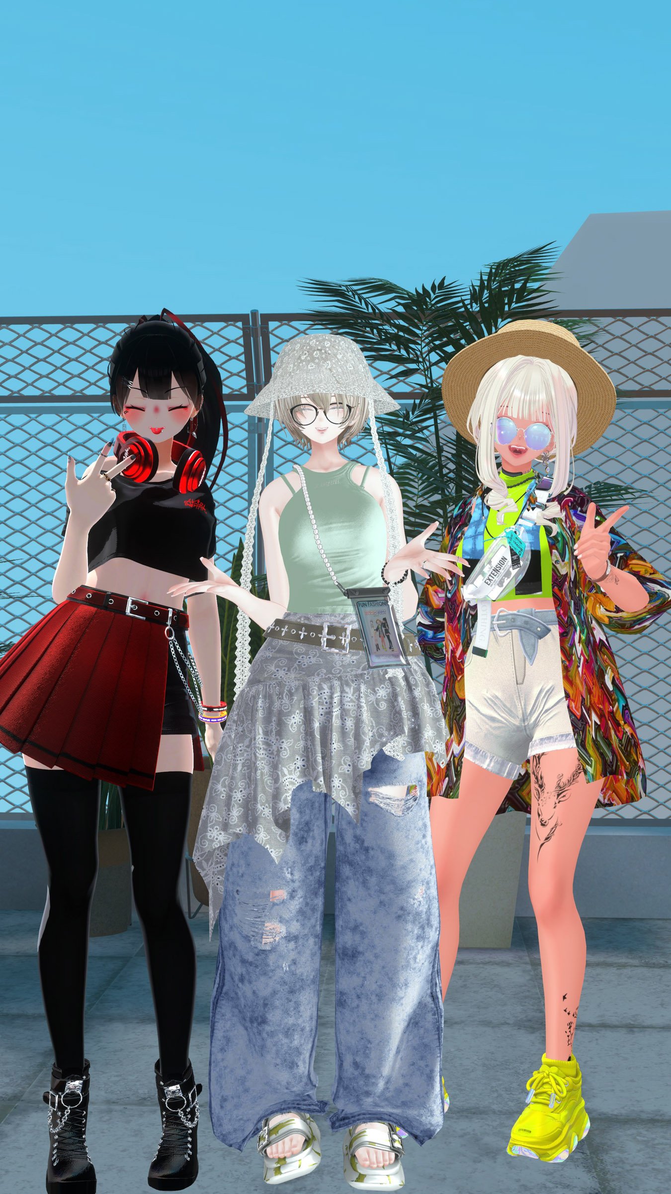 イベント会場にアクセスすると、40人ほどのユーザーが思い思いに談笑していた。一目で気が付いたのは、アバターの「服装」の多彩さだ。ワンピースや色落ちしたデニムを着こなし、大胆なパターンを合わせた“スタイリング上級者”ユーザーもいる。サングラスやシルバーアクセサリーなどの小物使いも映える。